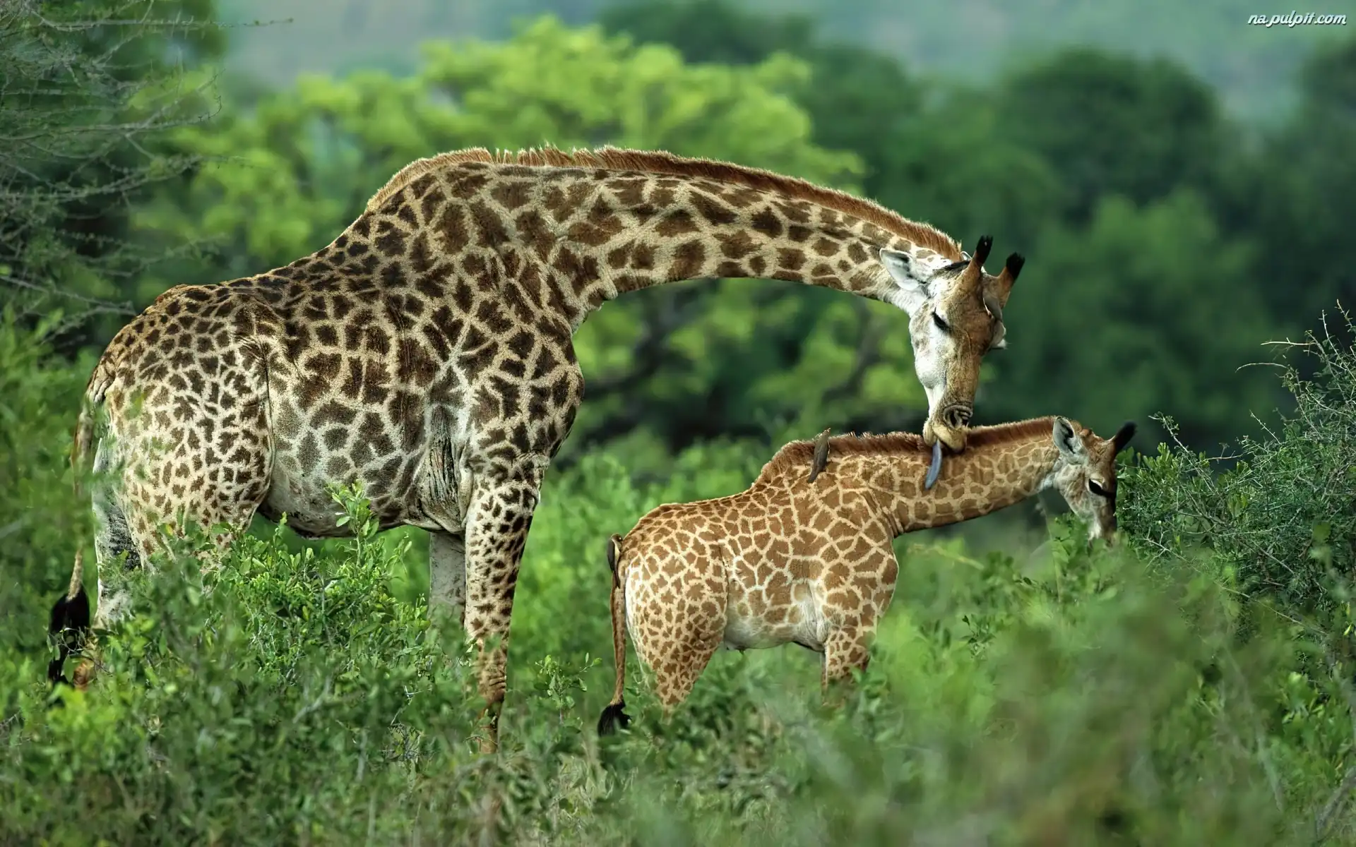Dziecko, Żyrafy, Dwie, Matka Na Pulpit