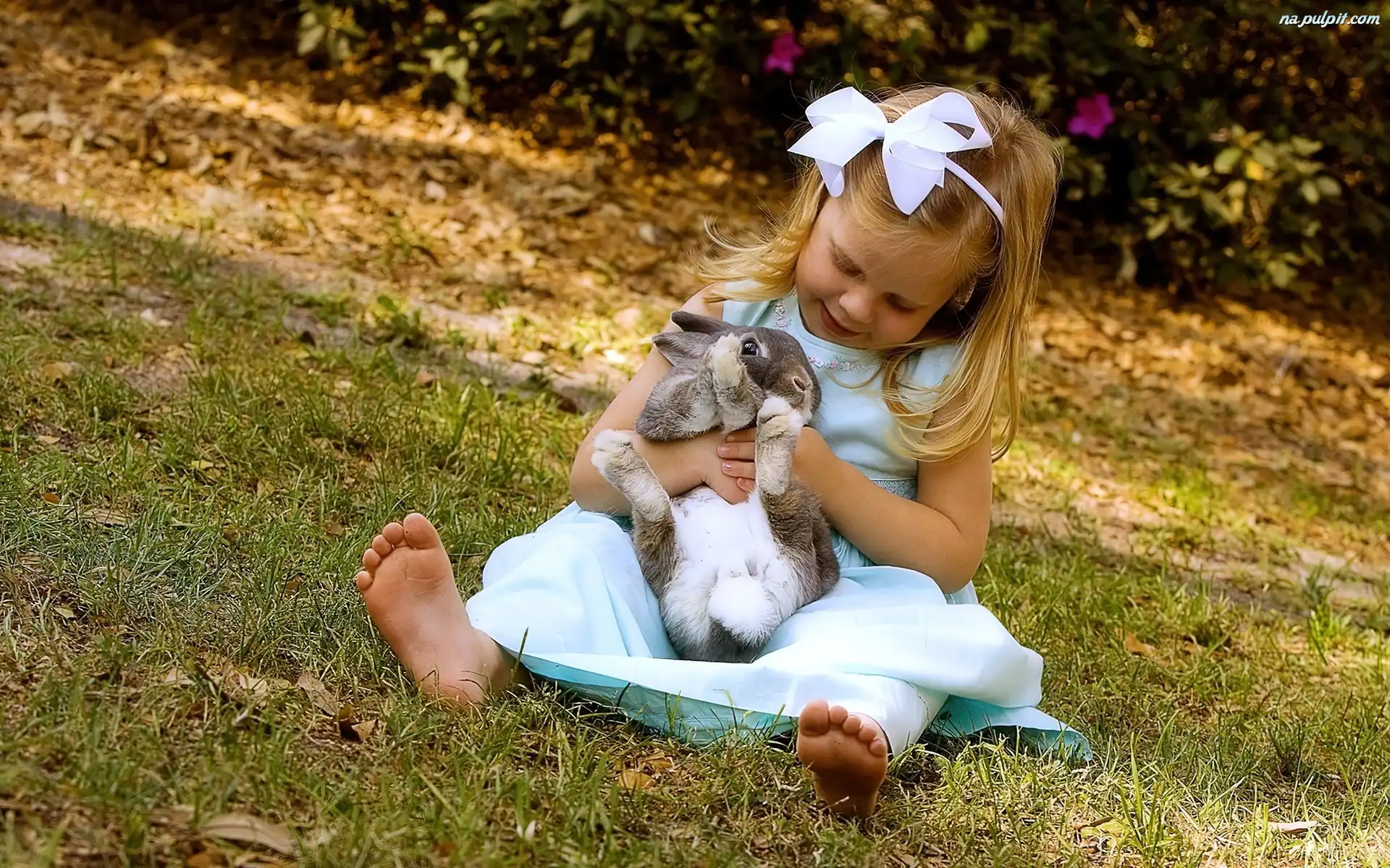 Łąka, Dziewczynka, Dziecko, Królik Na Pulpit