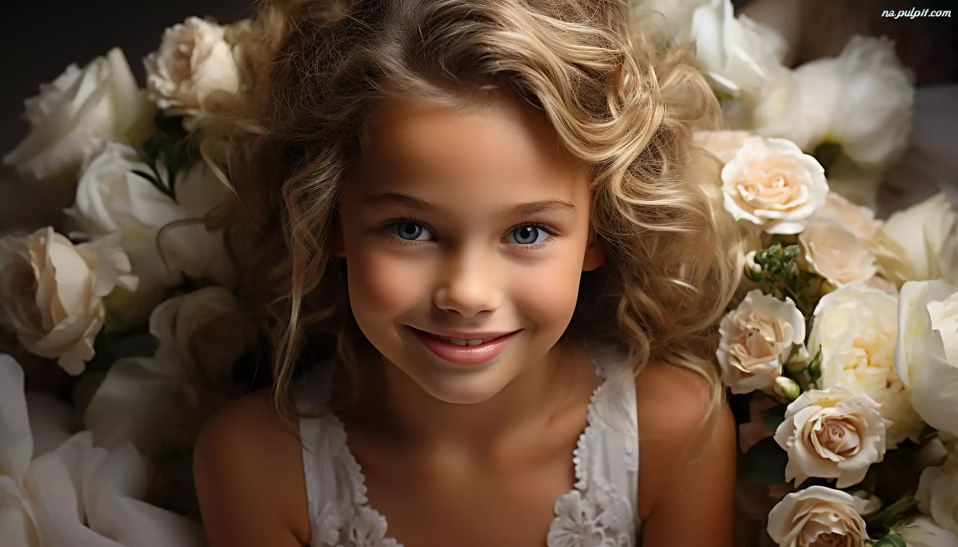 Kwiaty, Włosy, Kręcone, Dziecko, Dziewczynka, Długie, Twarz Na Pulpit