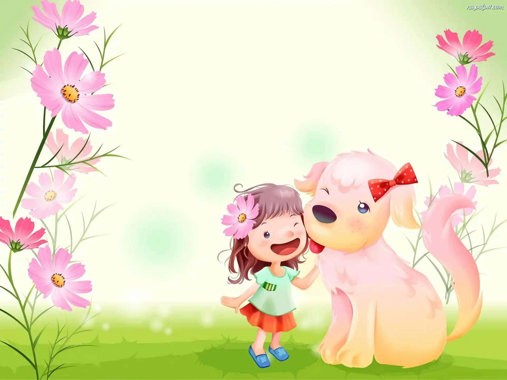 Kwiaty, Dziecko, Pies Na Pulpit