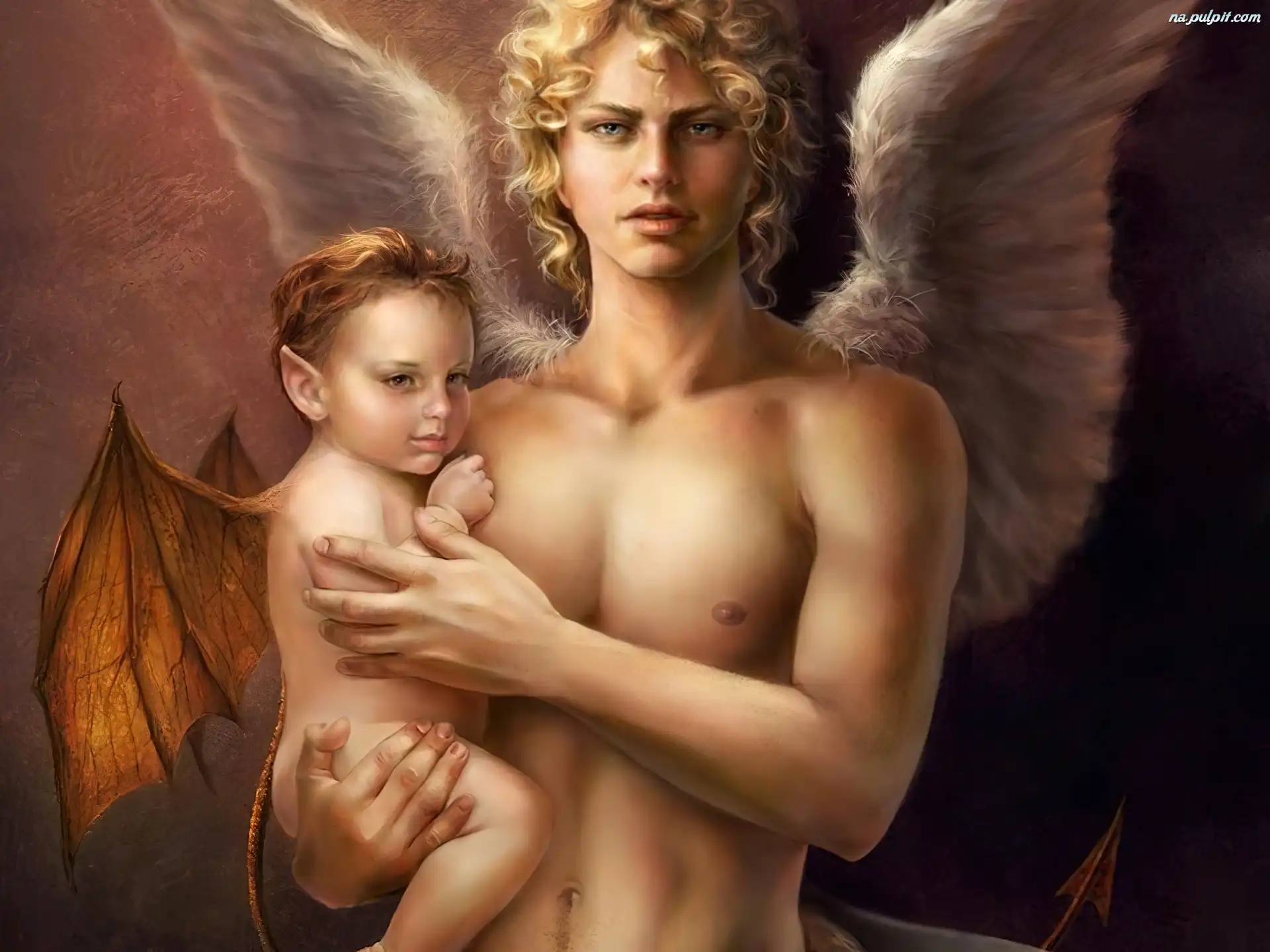 Dziecko, Anioł, Mężczyzna, Blondyn