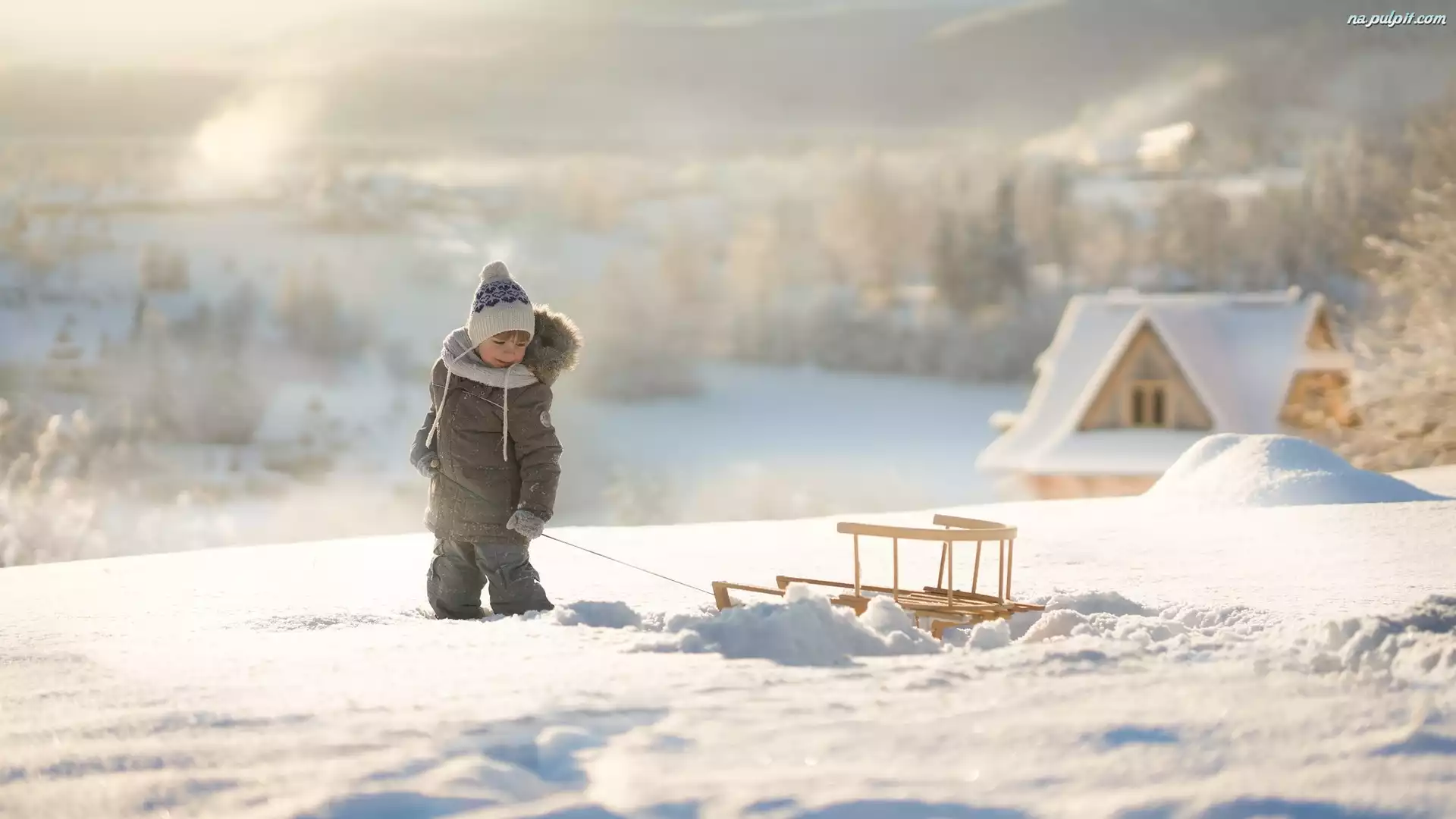 Åšnieg, Sanki, Dziecko, Zima Na Pulpit