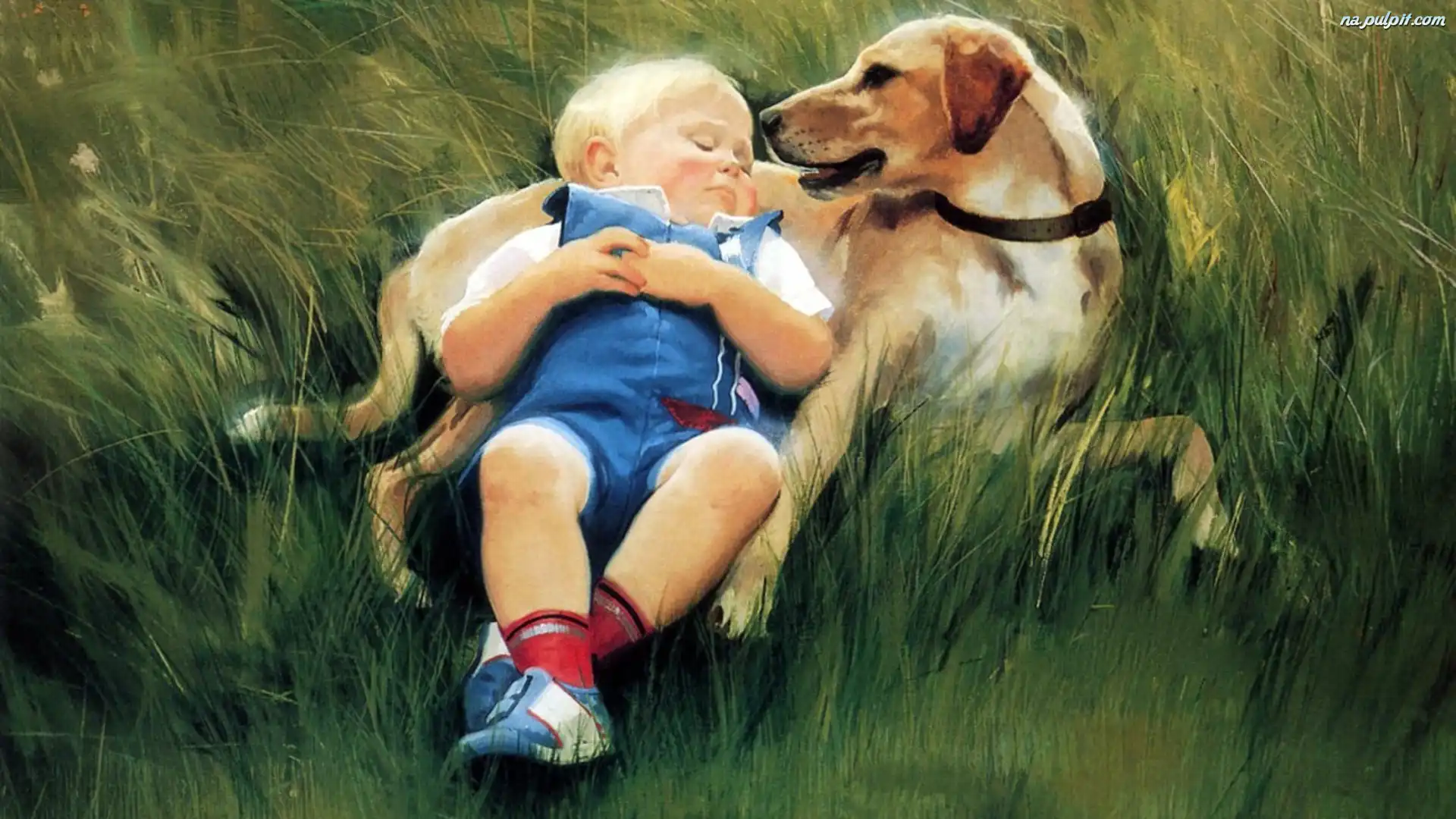 Trawa, Dziecko, Pies Na Pulpit
