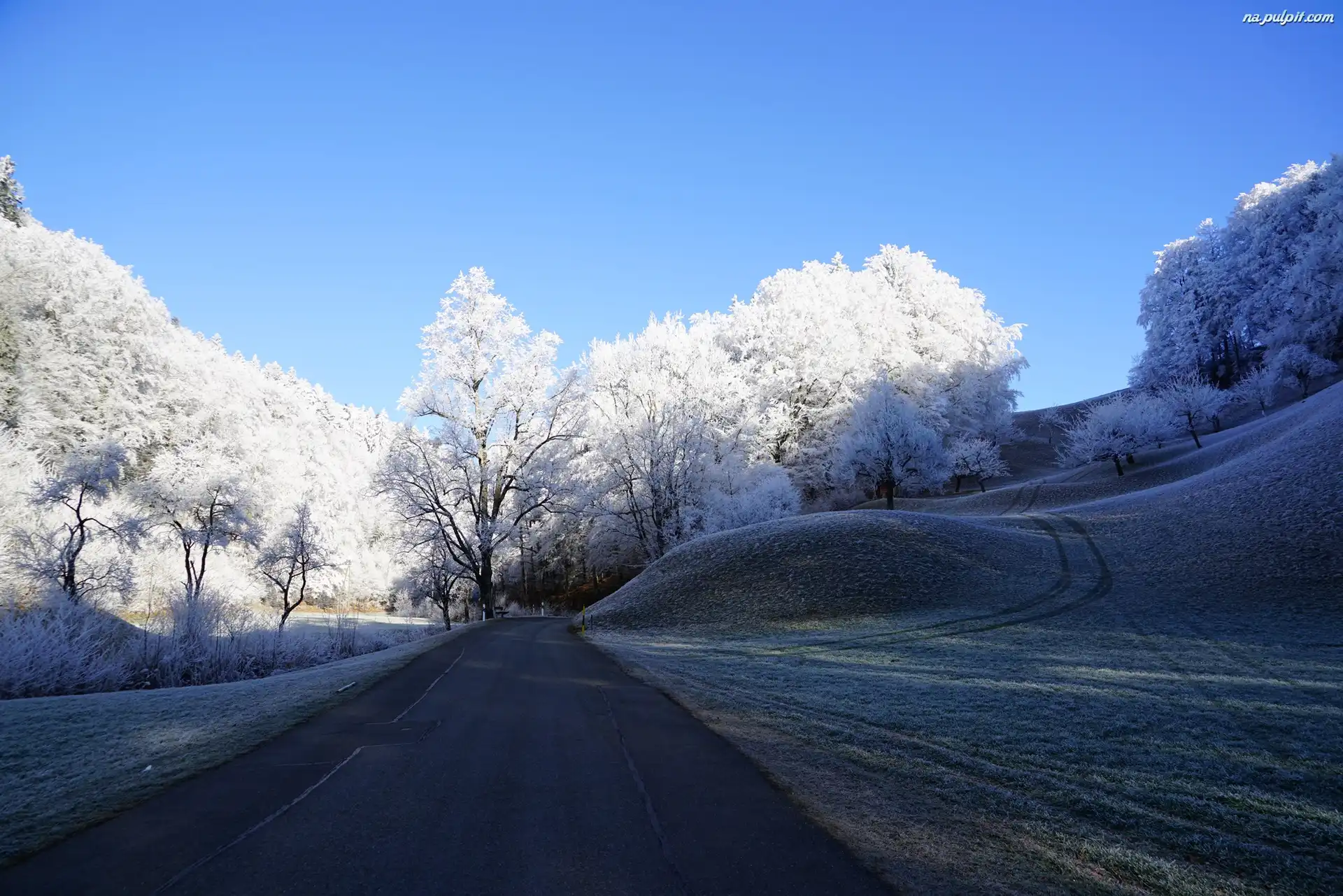 Dzień, Drzewa, Droga, Zima, Słoneczny Na Pulpit