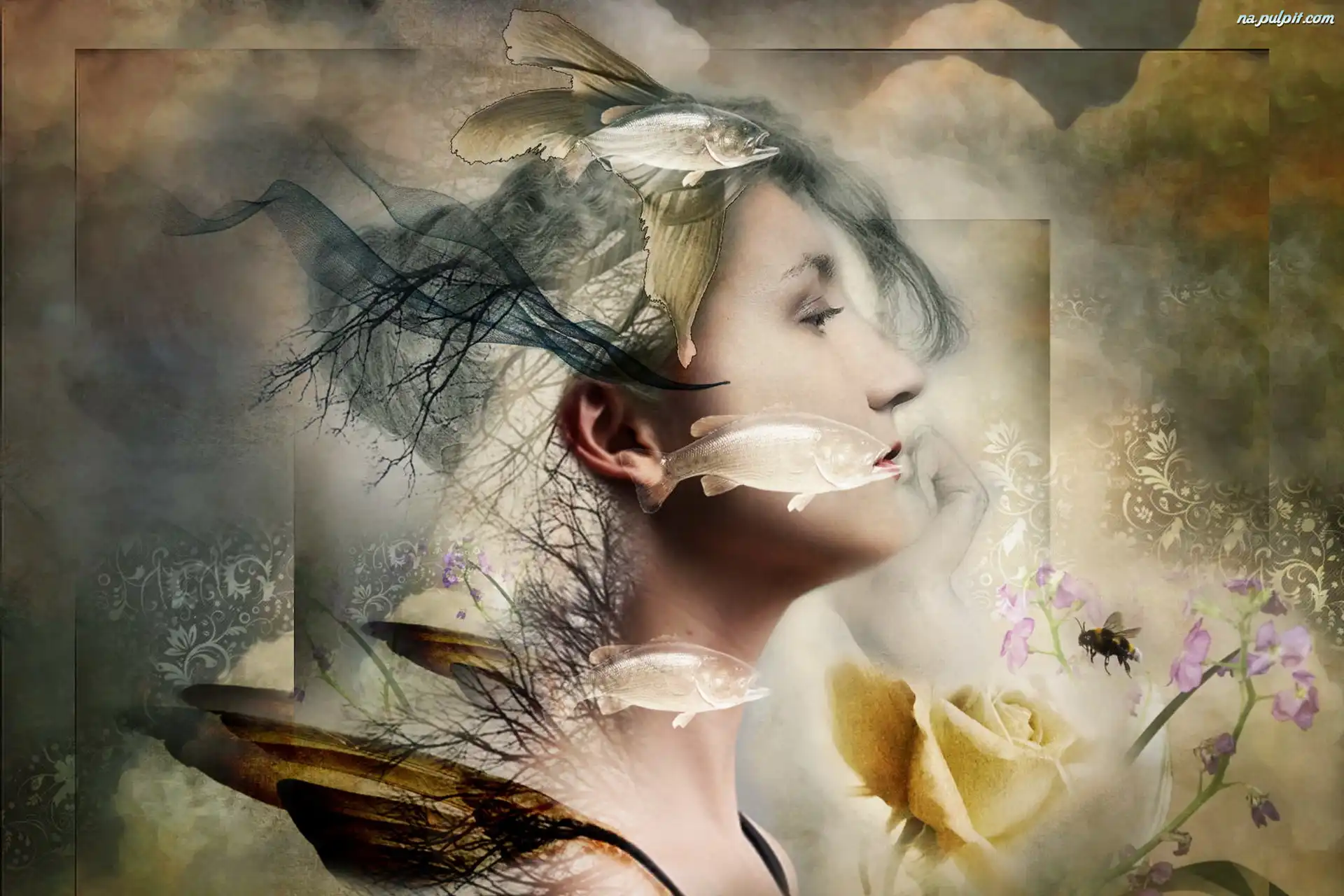 , Manhattan, Nowego Jorku, Dzielnica, Drapacze Kwiaty, Gry, Rzeka Skok, Ryby, Akwarium Model, Bentley Continental, Flagowy Lotos, Licie, Kwiat Zabytkowy, Corvette, Chevrolet, Kobieta, Corvair Pola, Pastwisko, Ogrodzenie Mniszek, Jarzbina, wierk, Gazka, Koniczyna