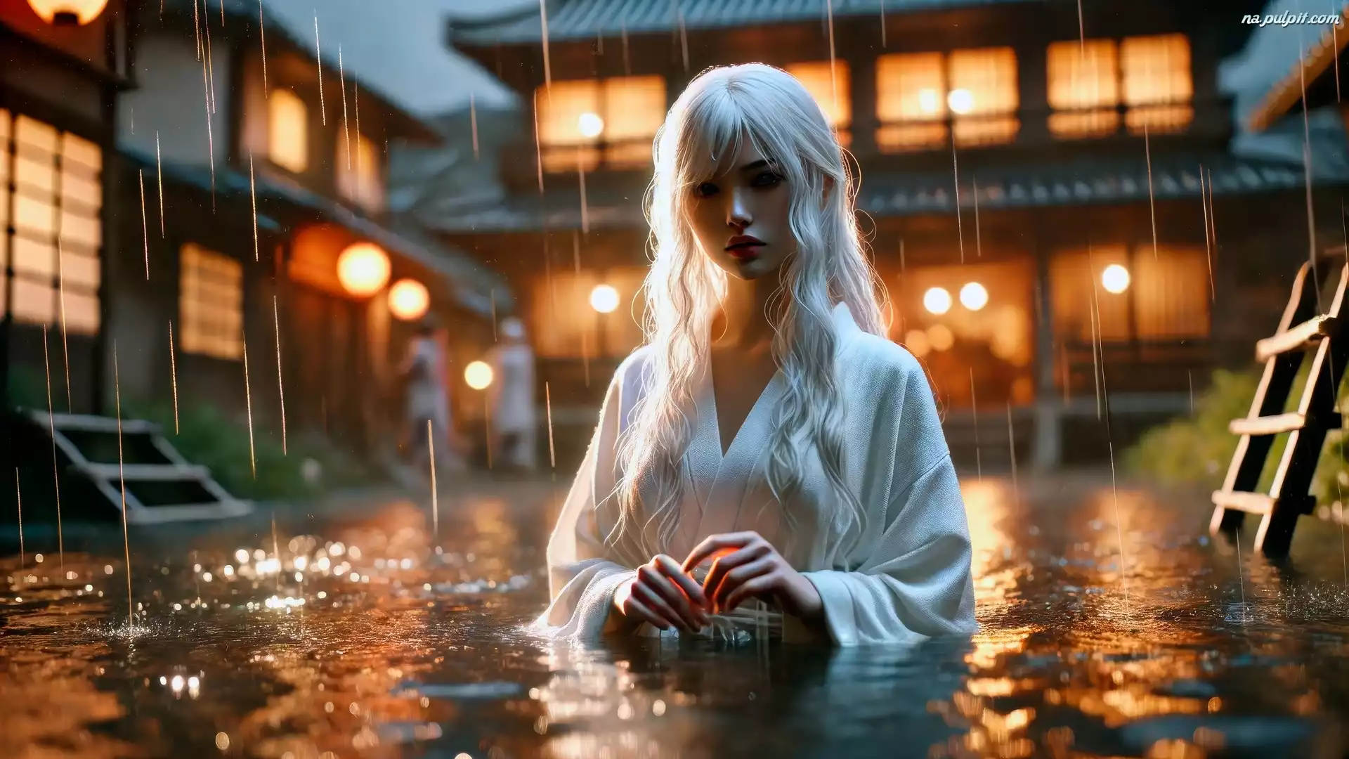 Grafika, Ubranie, Białe, Dziewczyna, Blond, Włosy, Woda Na Pulpit