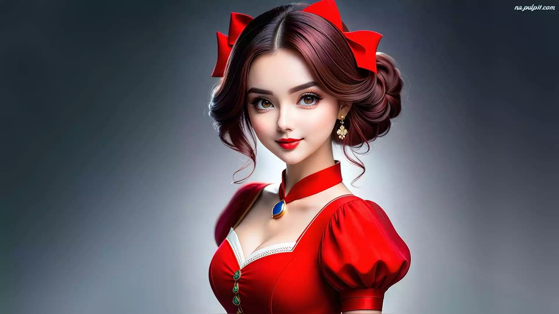 Kokardy, Sukienka, Czerwona, Dziewczyna, Czerwona, Szminka, Czerwone