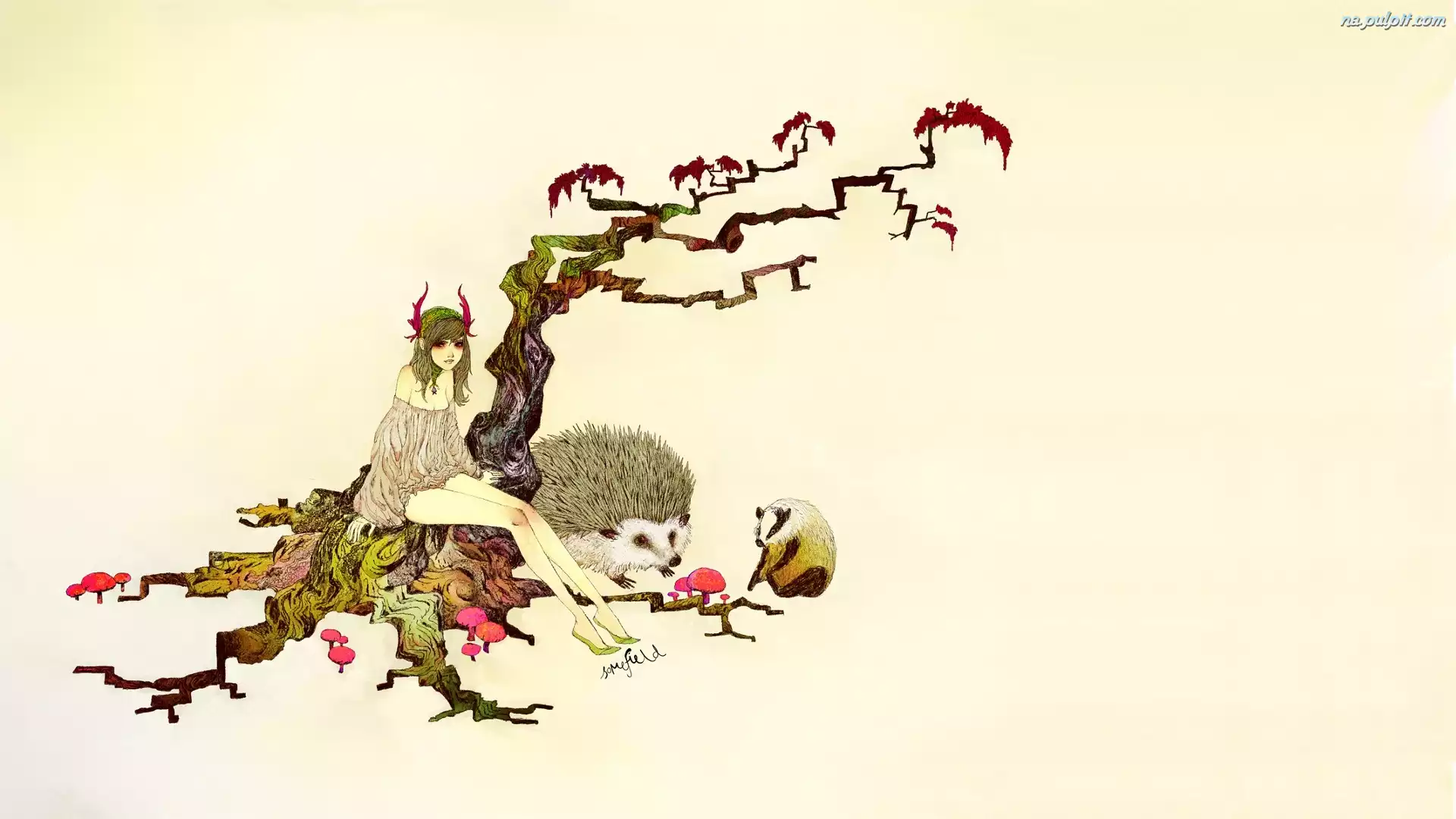 Grafika, Dziewczyna, Jeż Na Pulpit