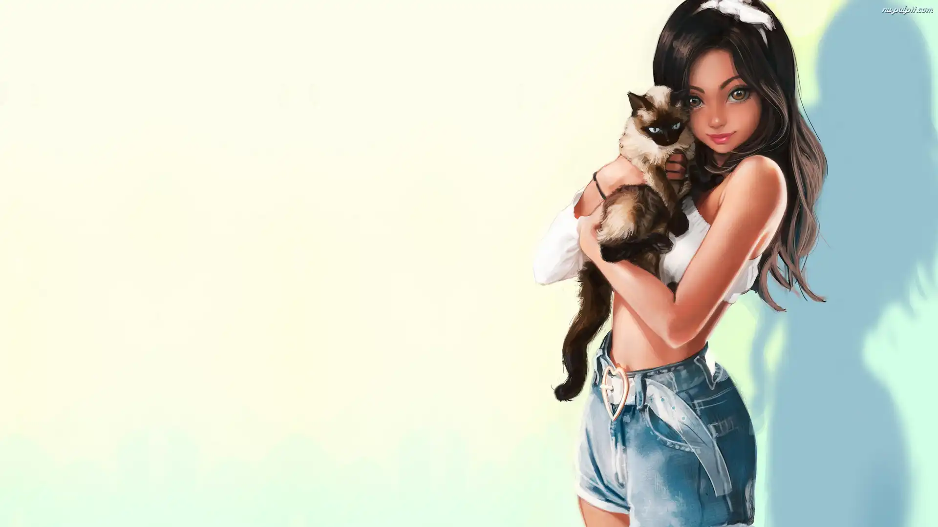 Grafika, Dziewczyna, Kot