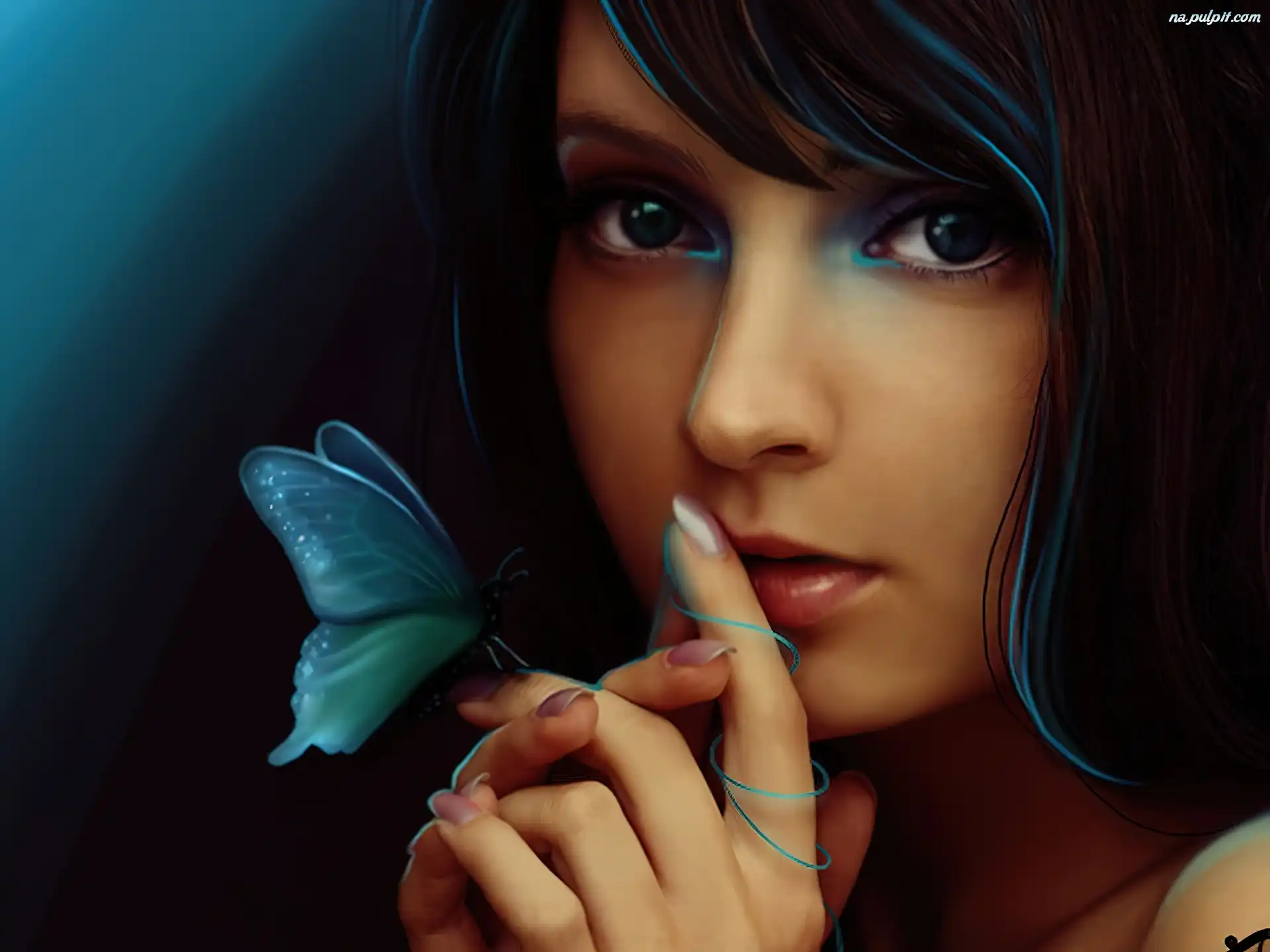 Grafika, Dziewczyna, Motyl Na Pulpit