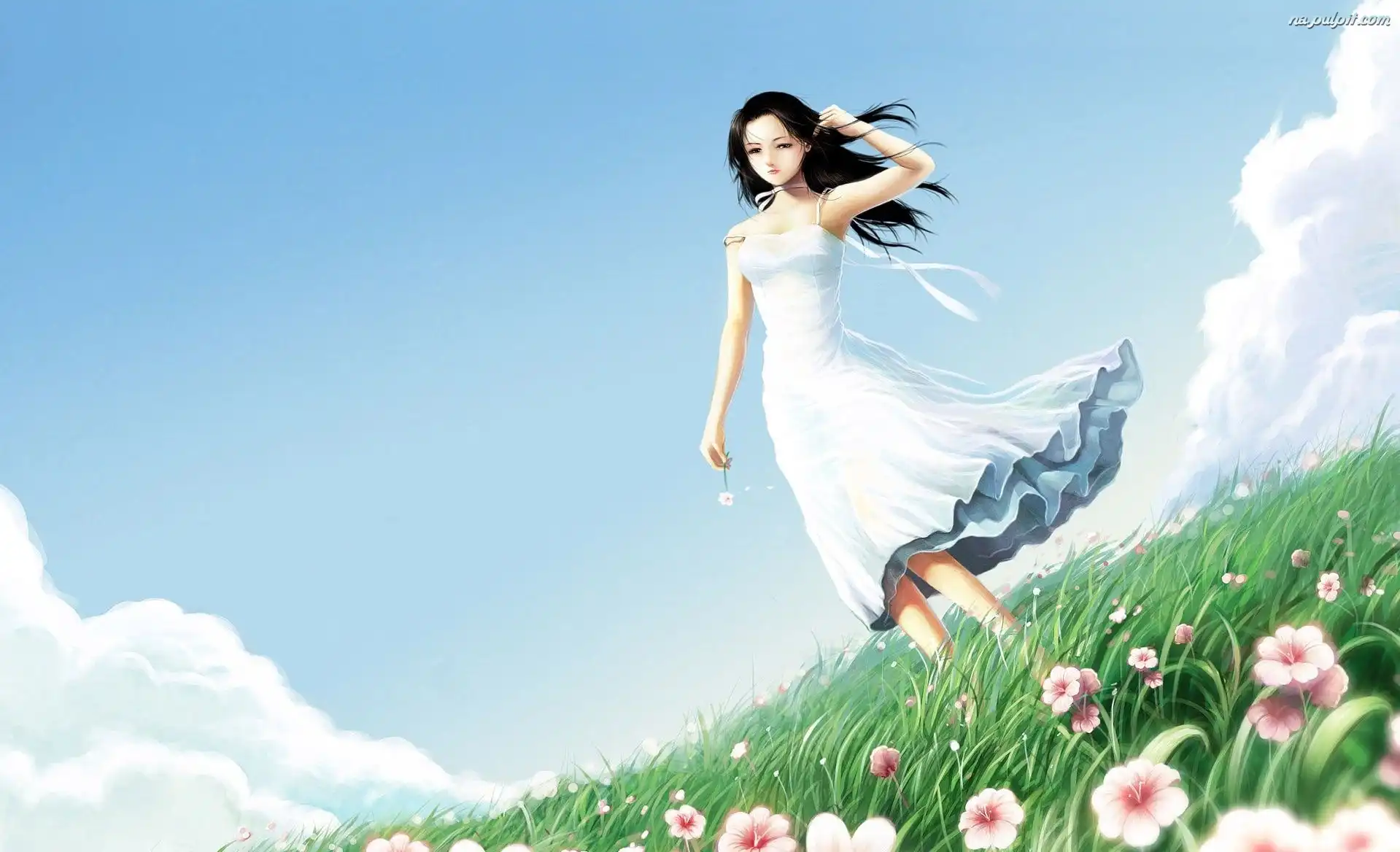 Kwiaty, Dziewczyna, Łąka Na Pulpit
