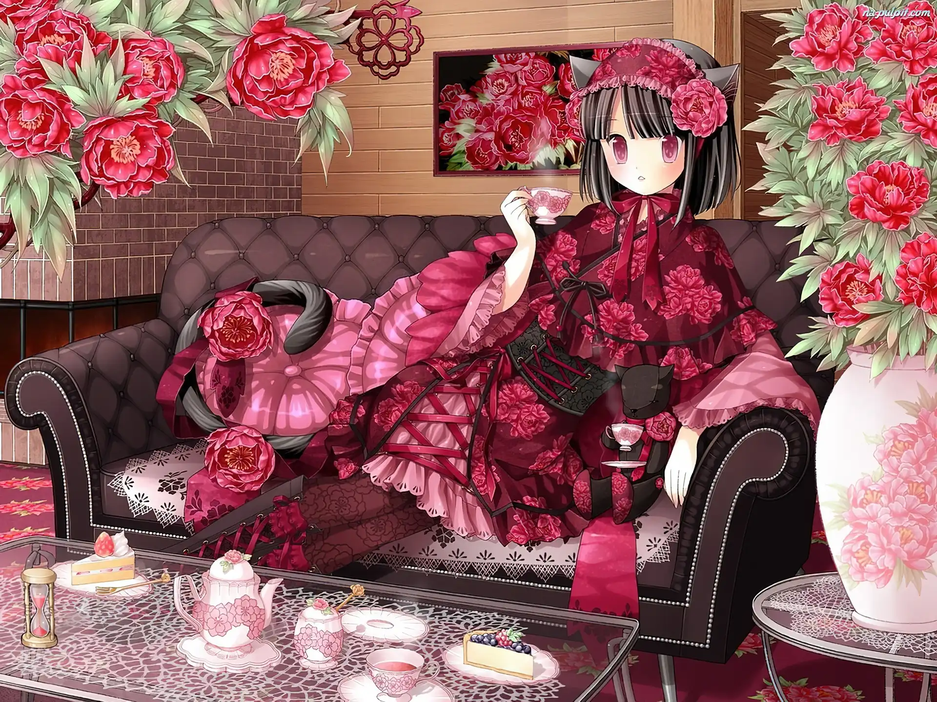 Kwiaty, Dziewczyna, Filiżanka Na Pulpit