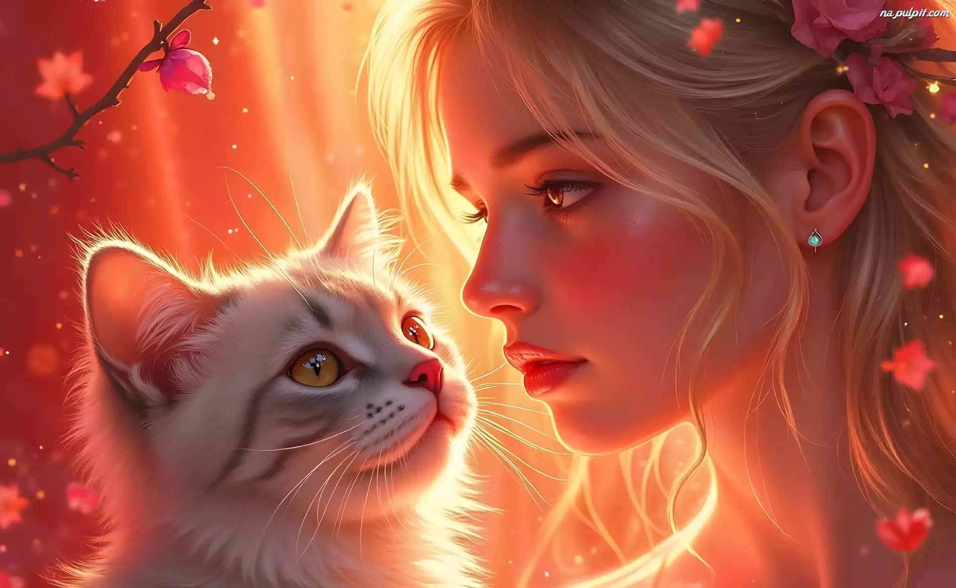 Åšwiato, Dziewczyna, Kwiaty, Grafika, Kot Na Pulpit