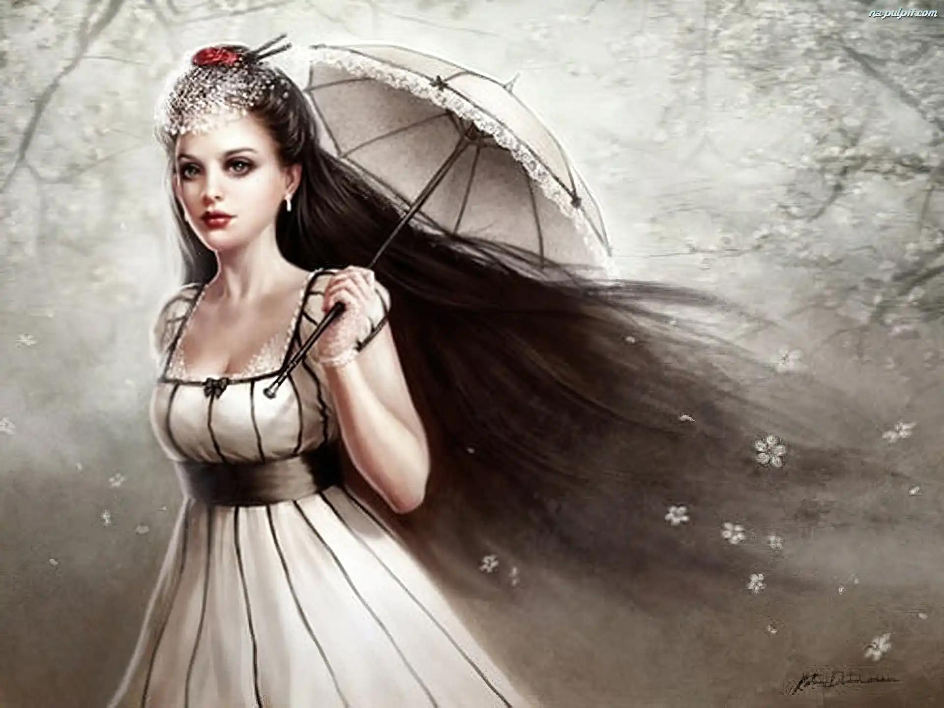 Kwiaty, Dziewczyna, Parasol Na Pulpit