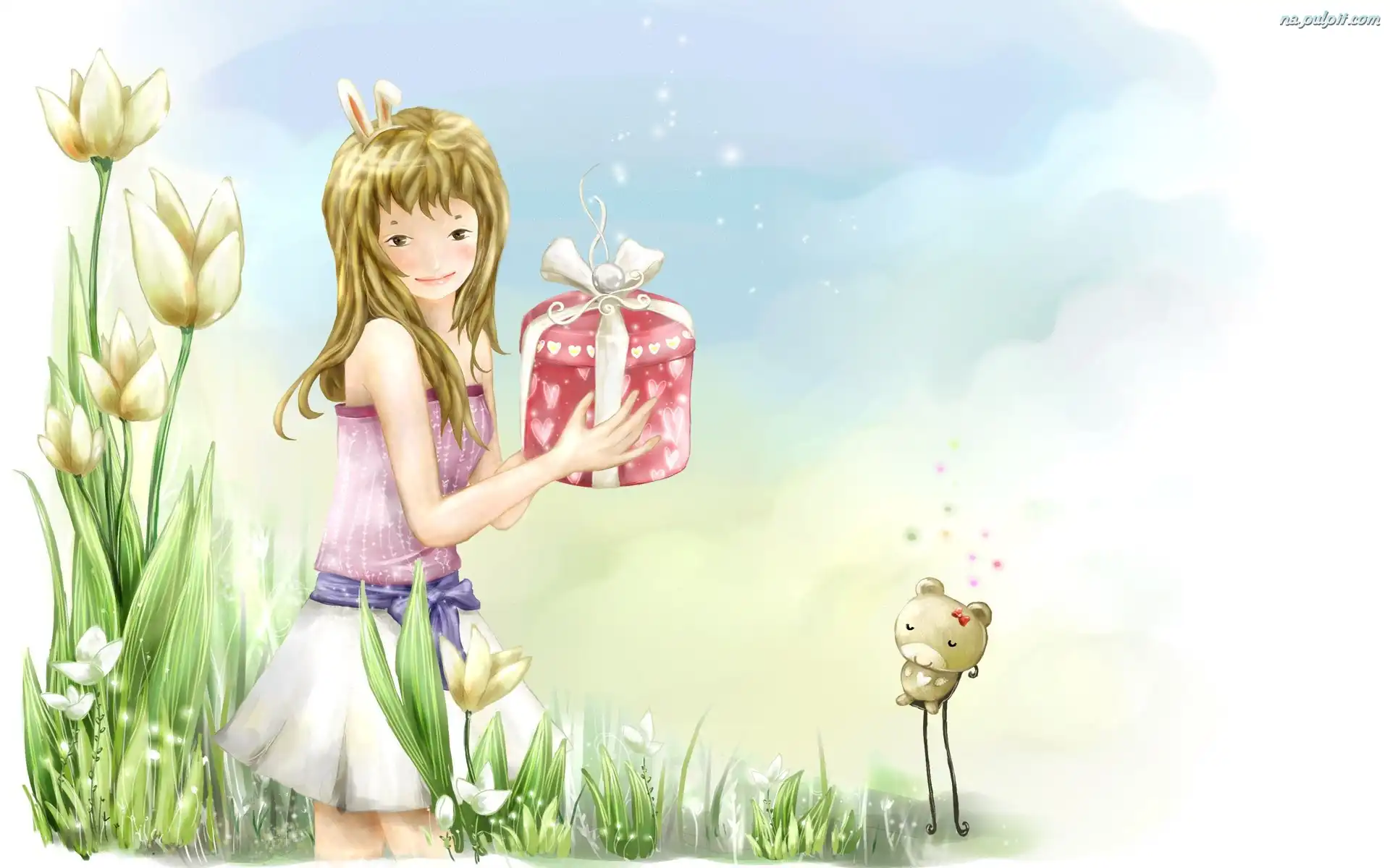Kwiaty, Dziewczyna, Prezent