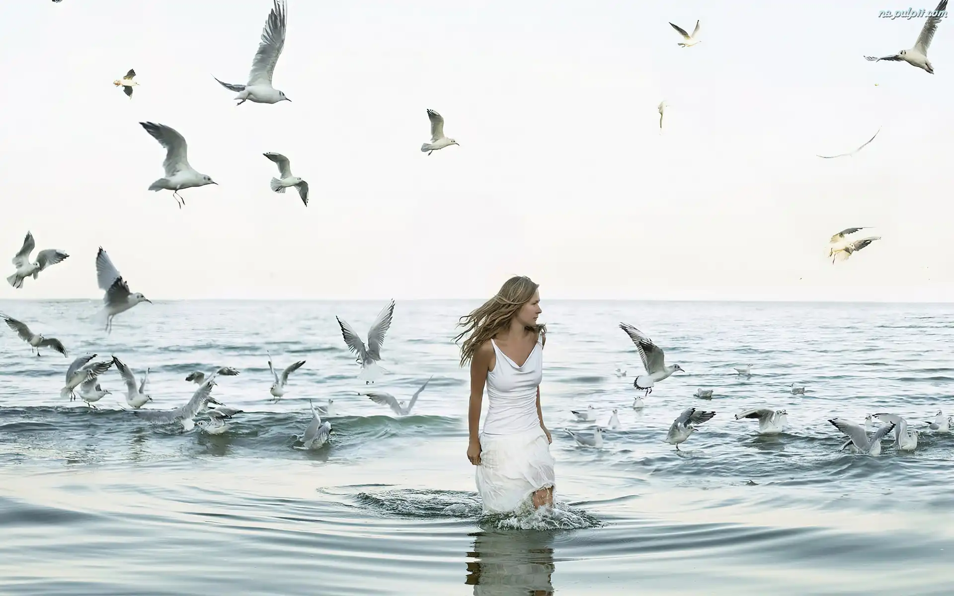Mewy, Dziewczyna, Morze Na Pulpit