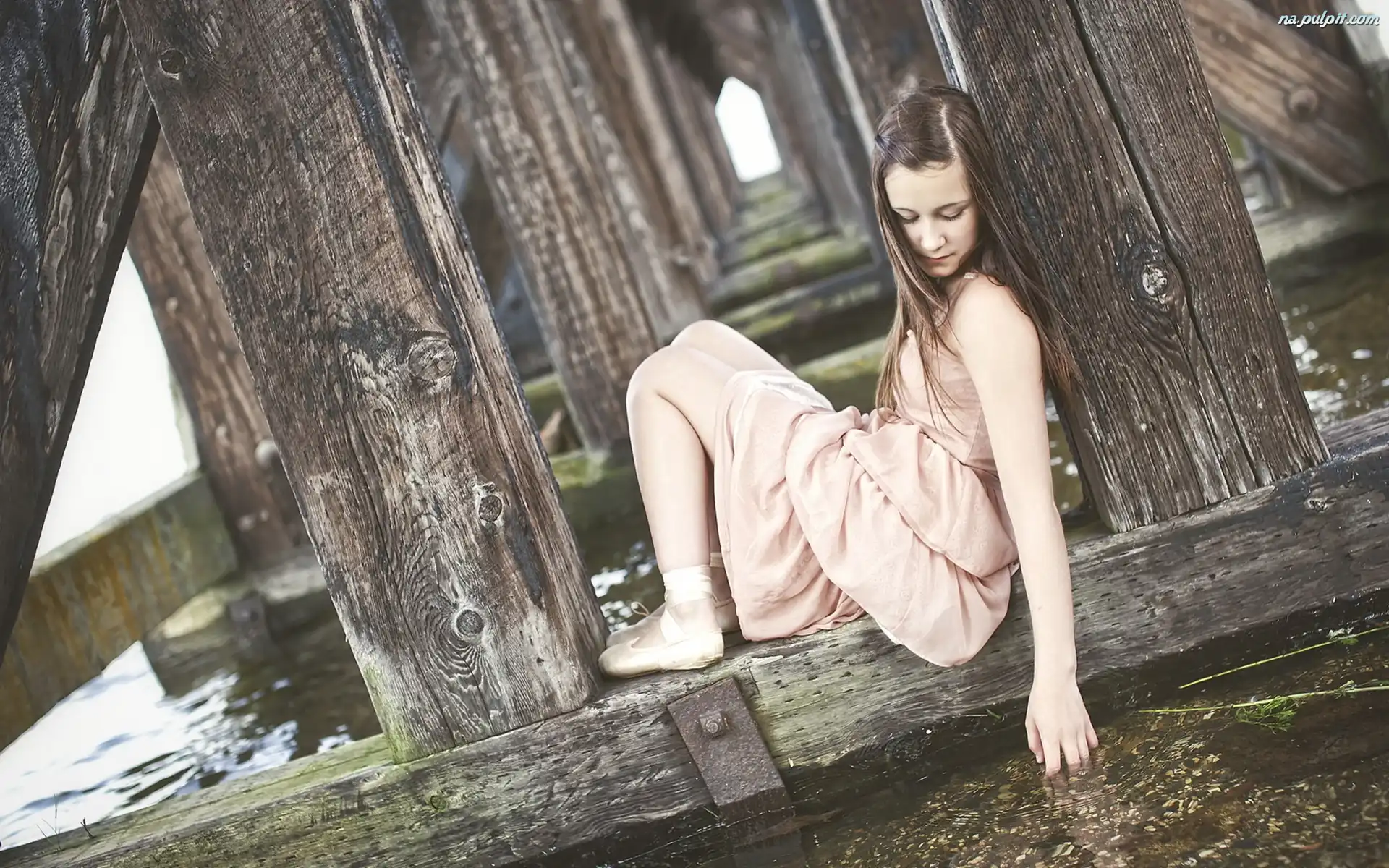 Dziewczyna, Woda, Molo, Brunetka, Młoda, Baletnica