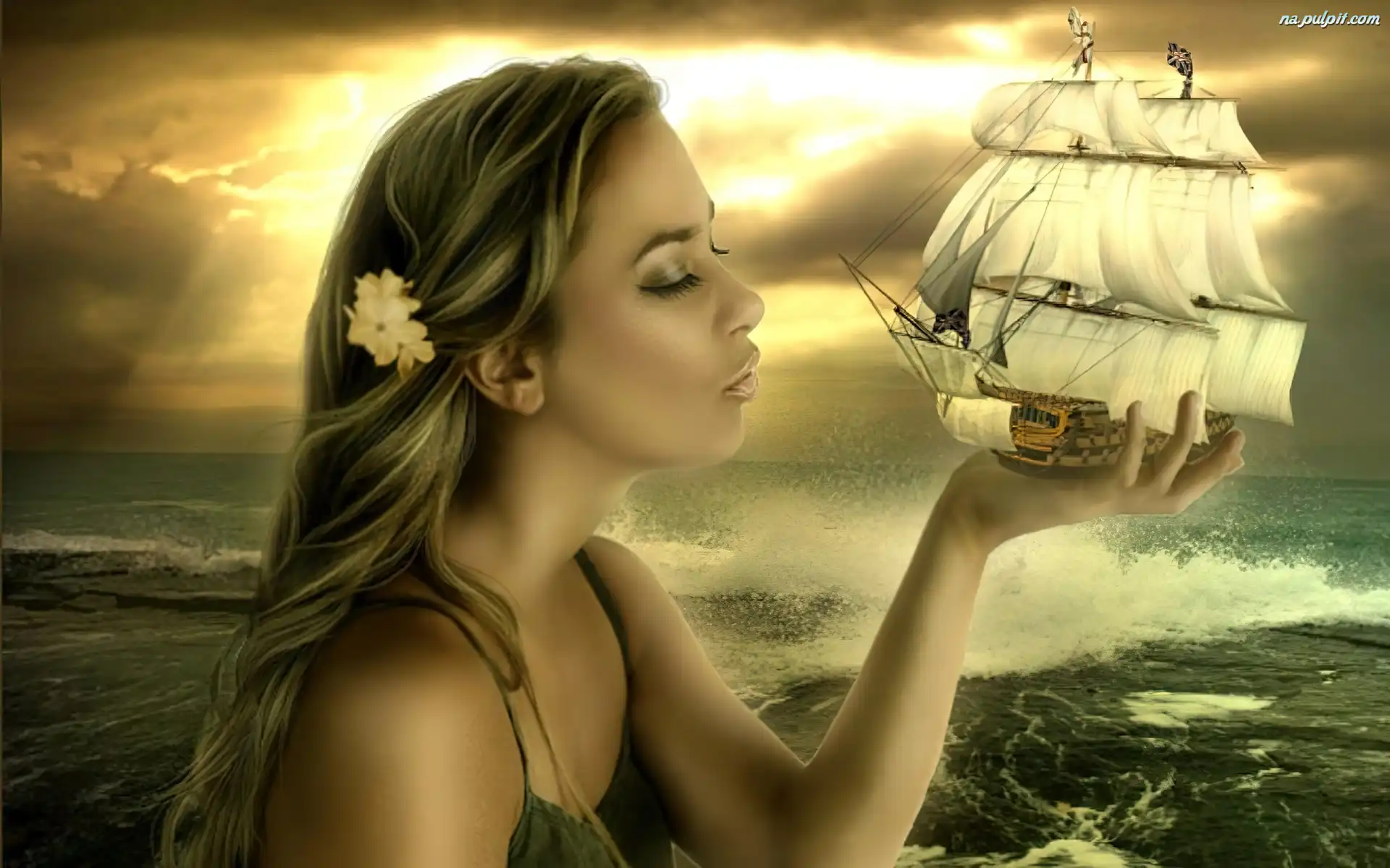 Morze, Dziewczyna, Żaglowiec Na Pulpit