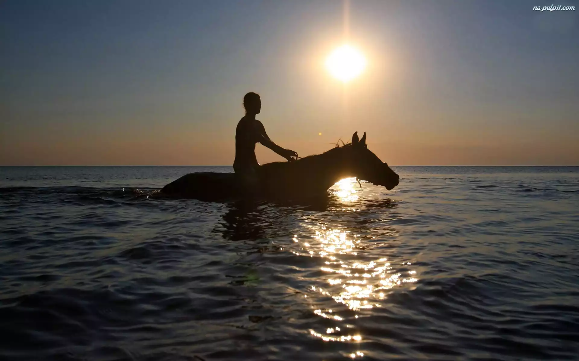 Dziewczyna, Słońce, Morze, Koń Na Pulpit
