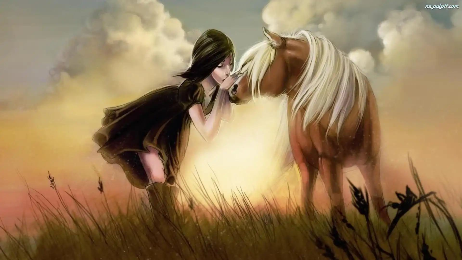 Pocałunek, Dziewczyna, Koń Na Pulpit