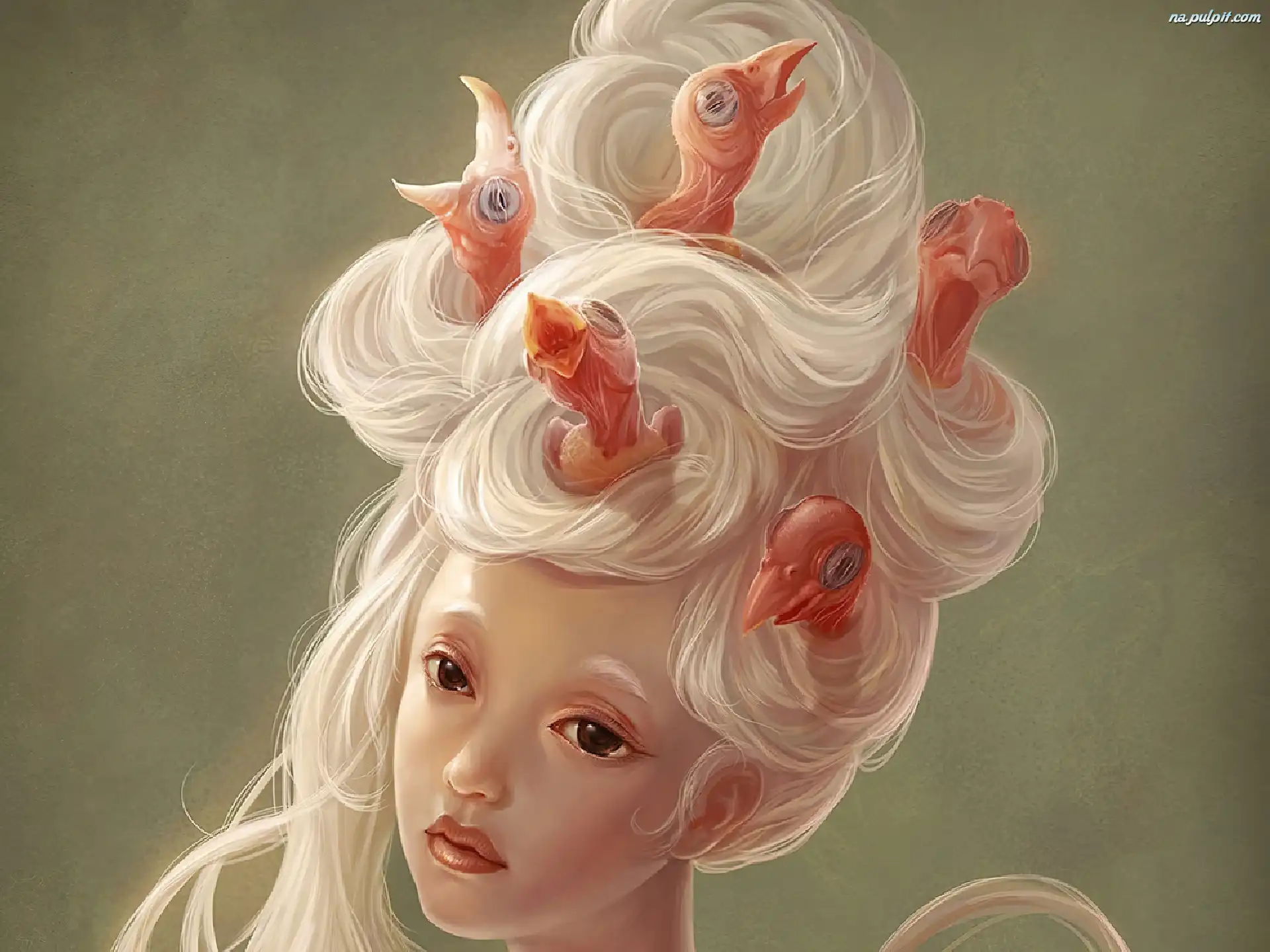 Ptaszki, Dziewczyna, Fryzura Na Pulpit