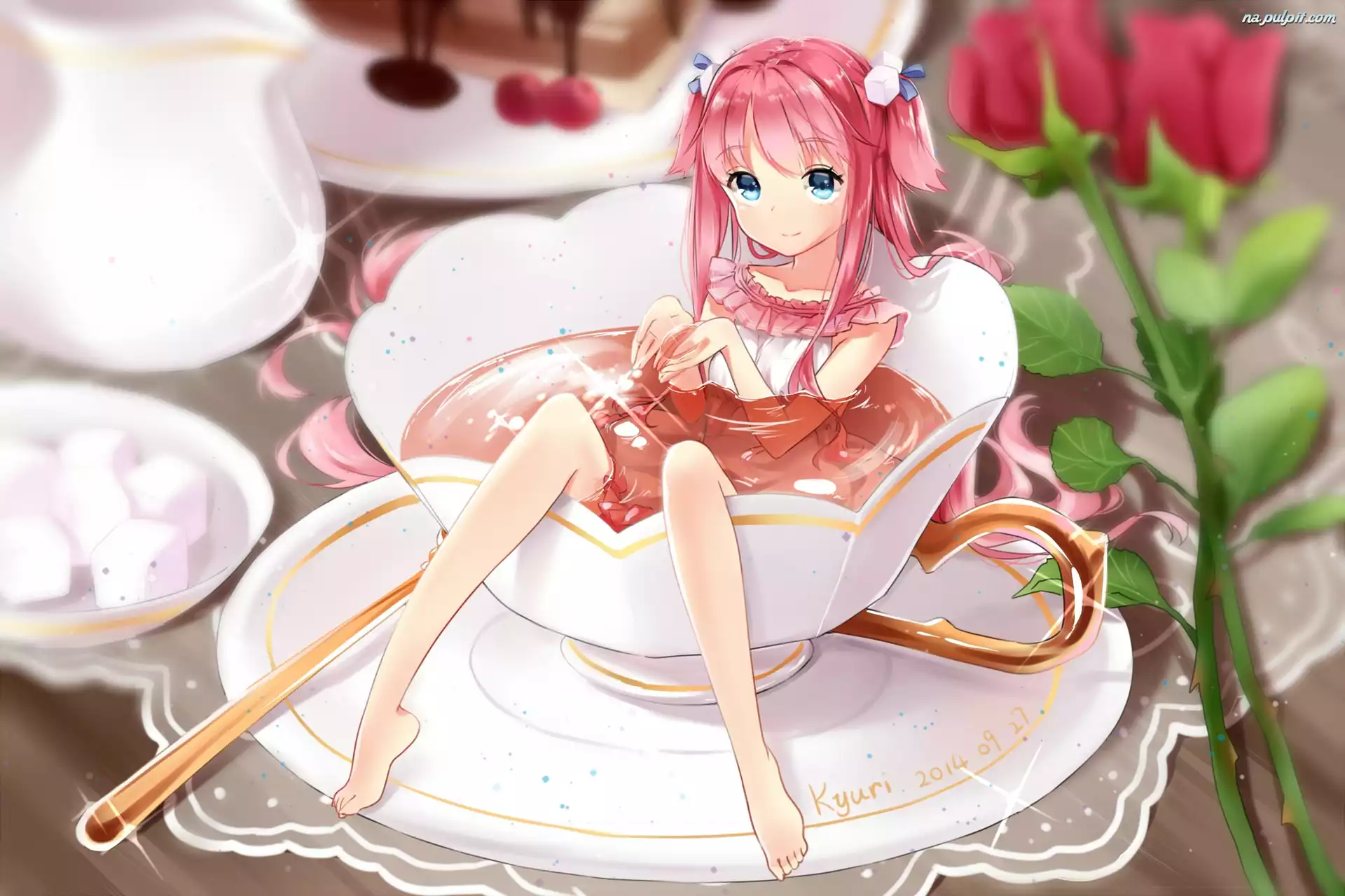 Róże, Dziewczyna, Filiżanka Na Pulpit