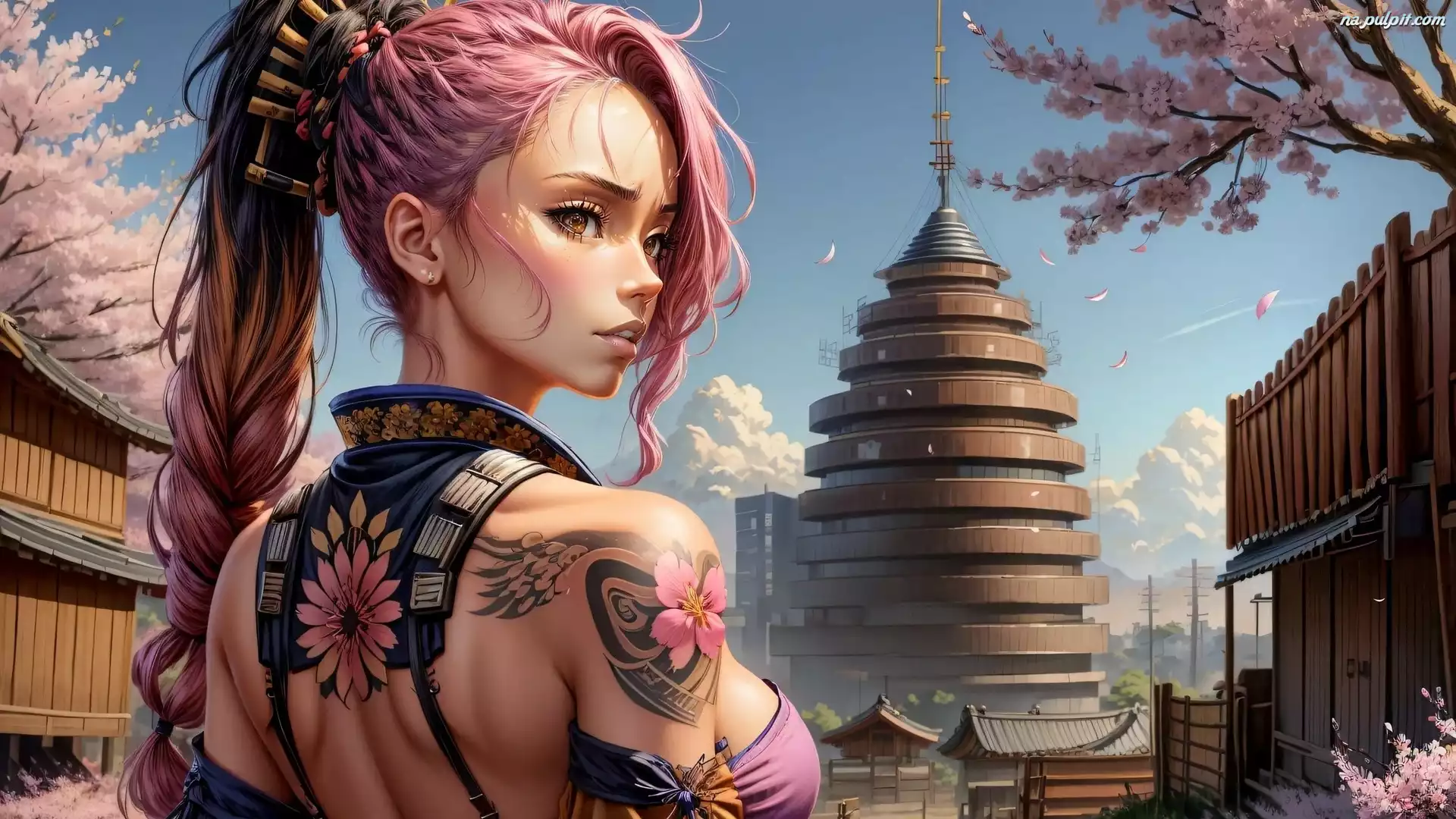 Tatuaż, Dziewczyna, Różowe, Grafika, Włosy Na Pulpit