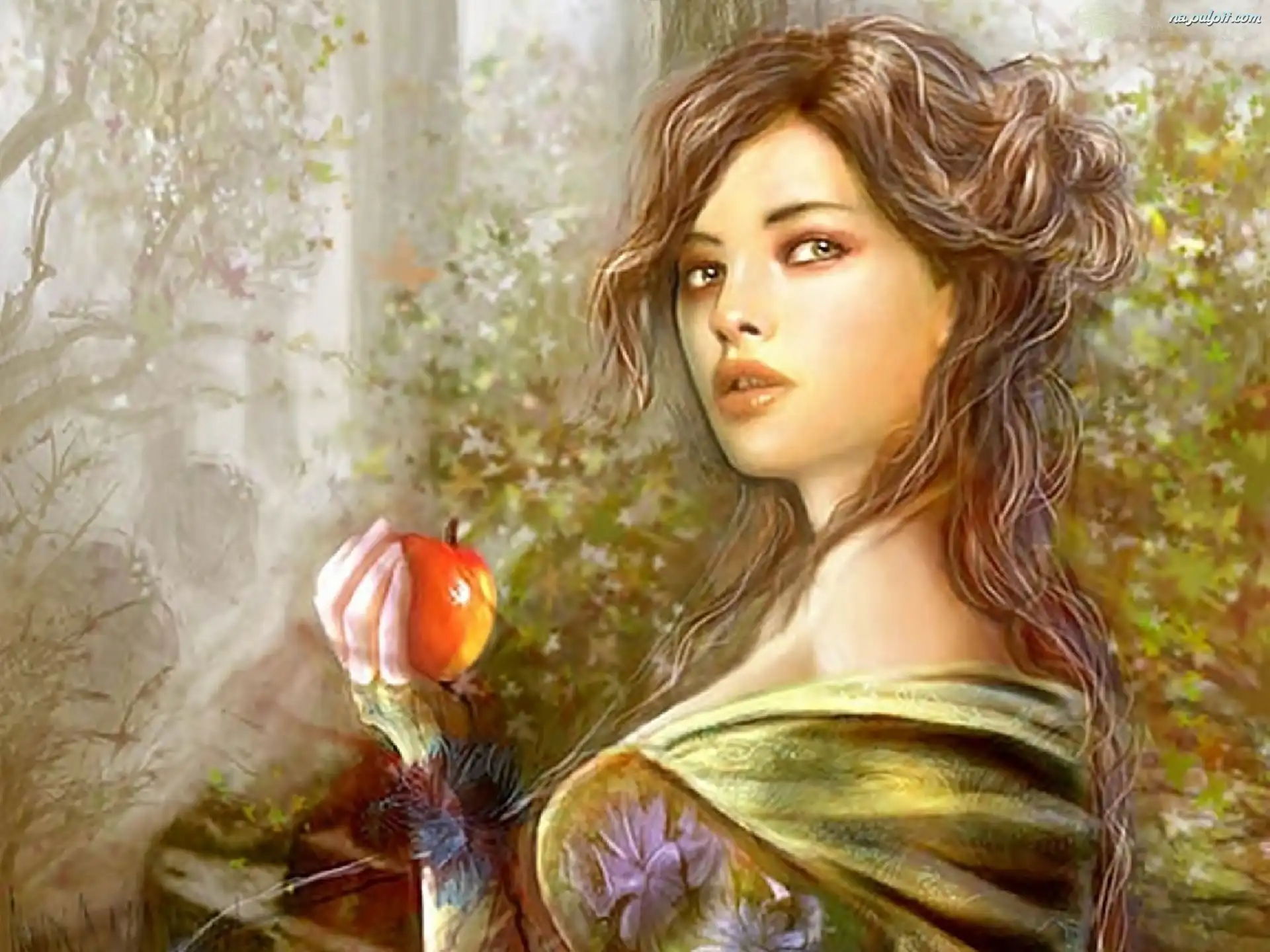 Spojrzenie, Dziewczyna, Jabłko Na Pulpit