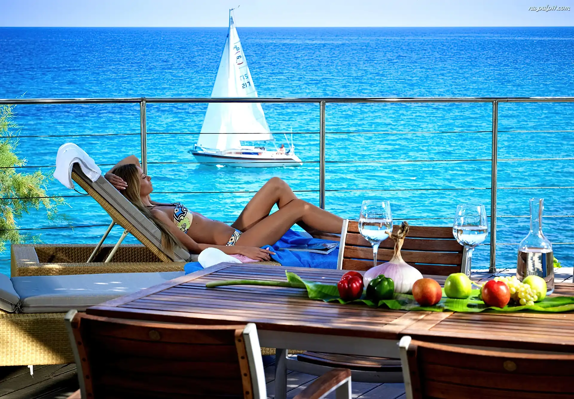 Żaglówka, Taras, Opalanie, Dziewczyna, Morze Na Pulpit