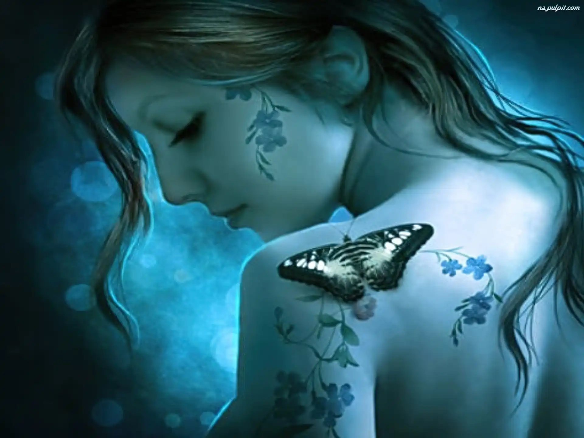 Tatuaż, Dziewczyna, Motyl Na Pulpit