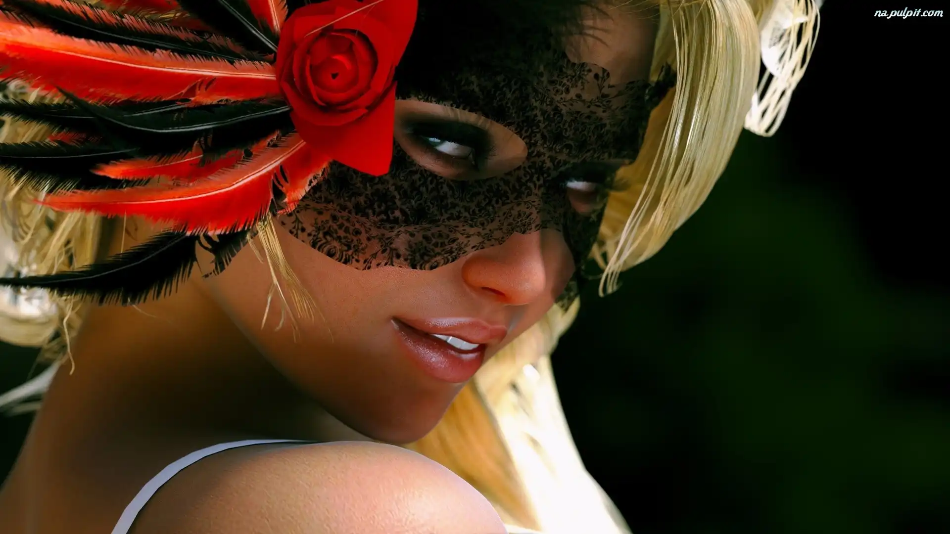 Tło, Dziewczyna, Zielone, Róża, Maska, Uśmiech, Pióra Na Pulpit