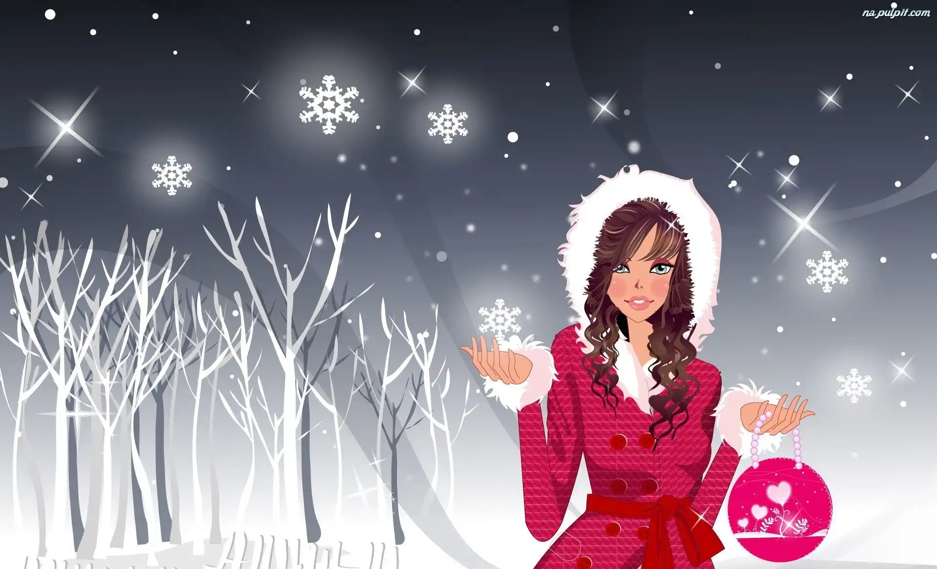 Śniegu, Torebka, Dziewczyna, Płatki Na Pulpit
