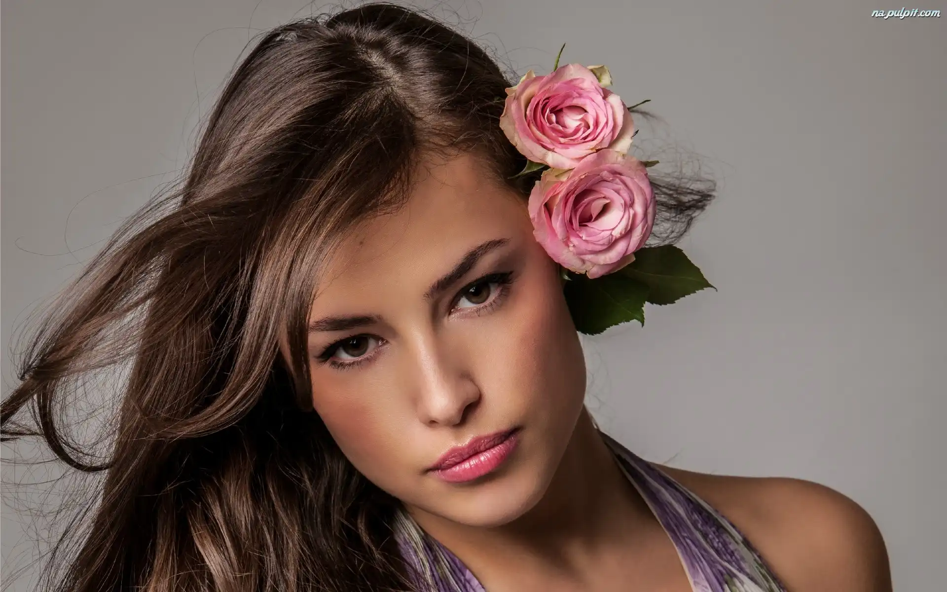 Włosach, Dziewczyna, We, Makijaż, Modelka, Piękna, Róże Na Pulpit