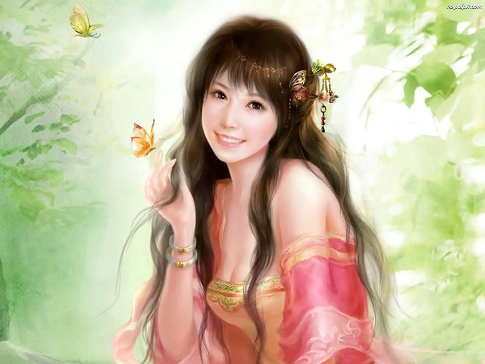Zieleń, Dziewczyna, Motyle Na Pulpit