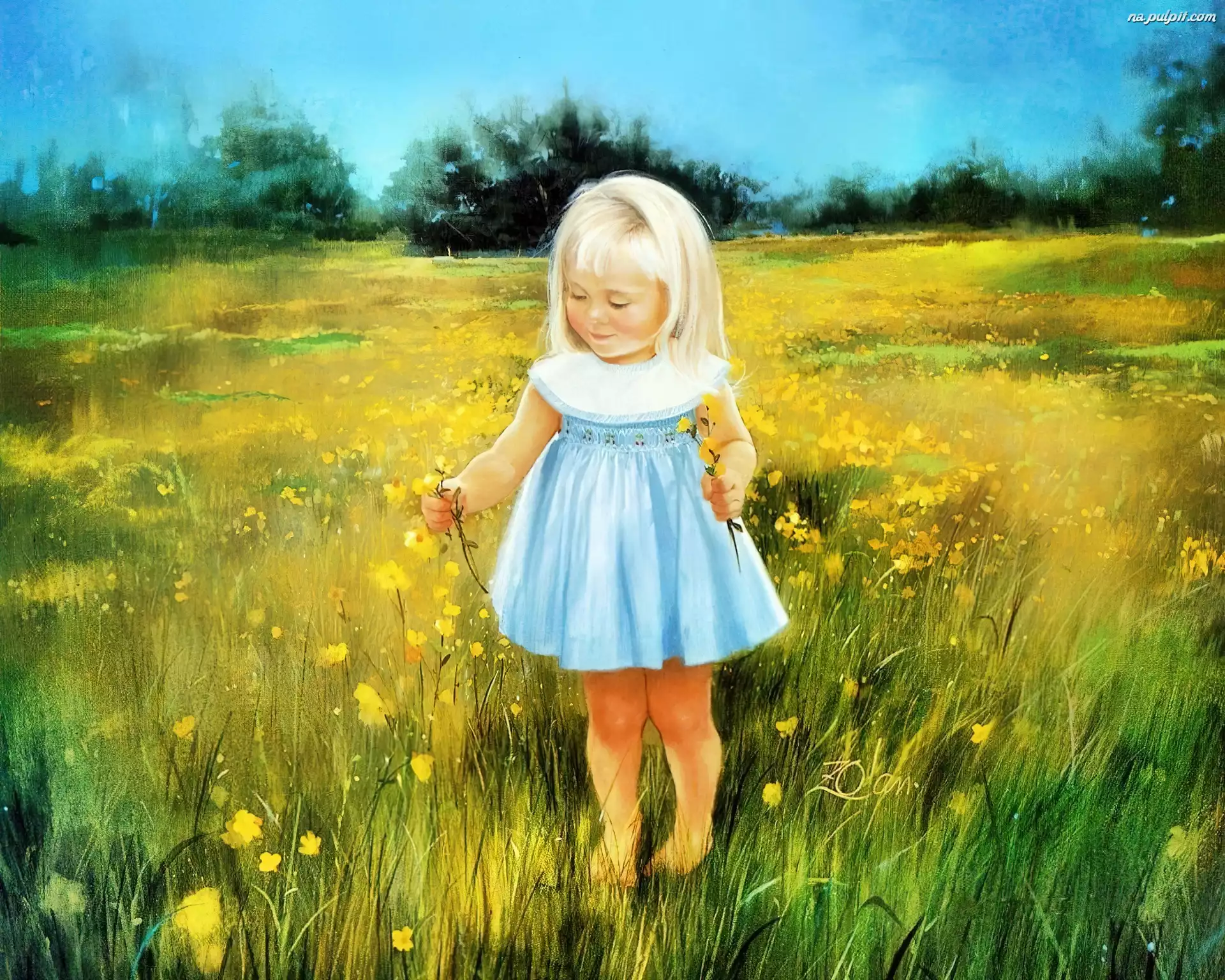 Łąka, Dziewczynka, Kwiatuszki Na Pulpit
