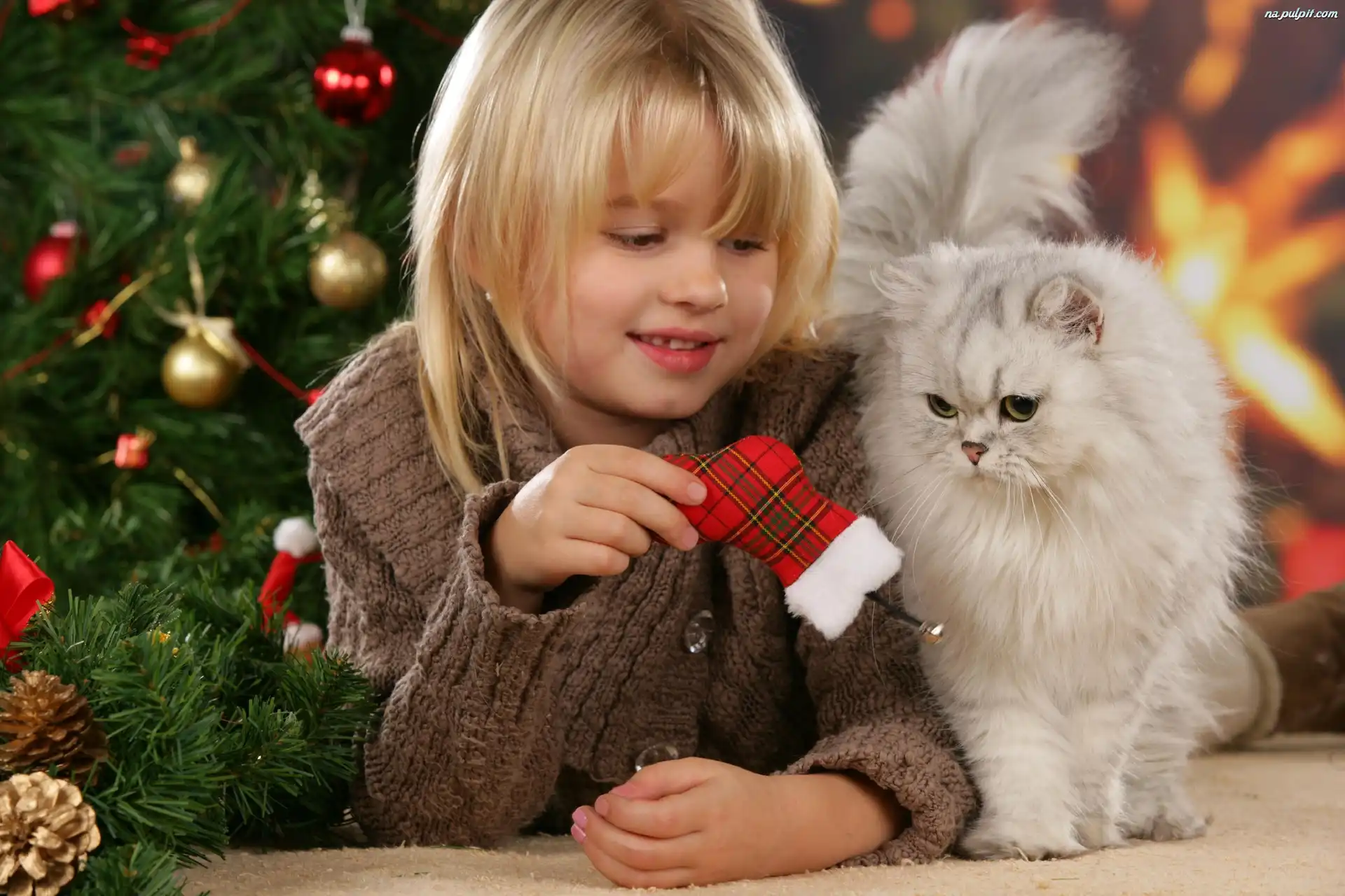 Choinka, Dziewczynka, Kotek Na Pulpit