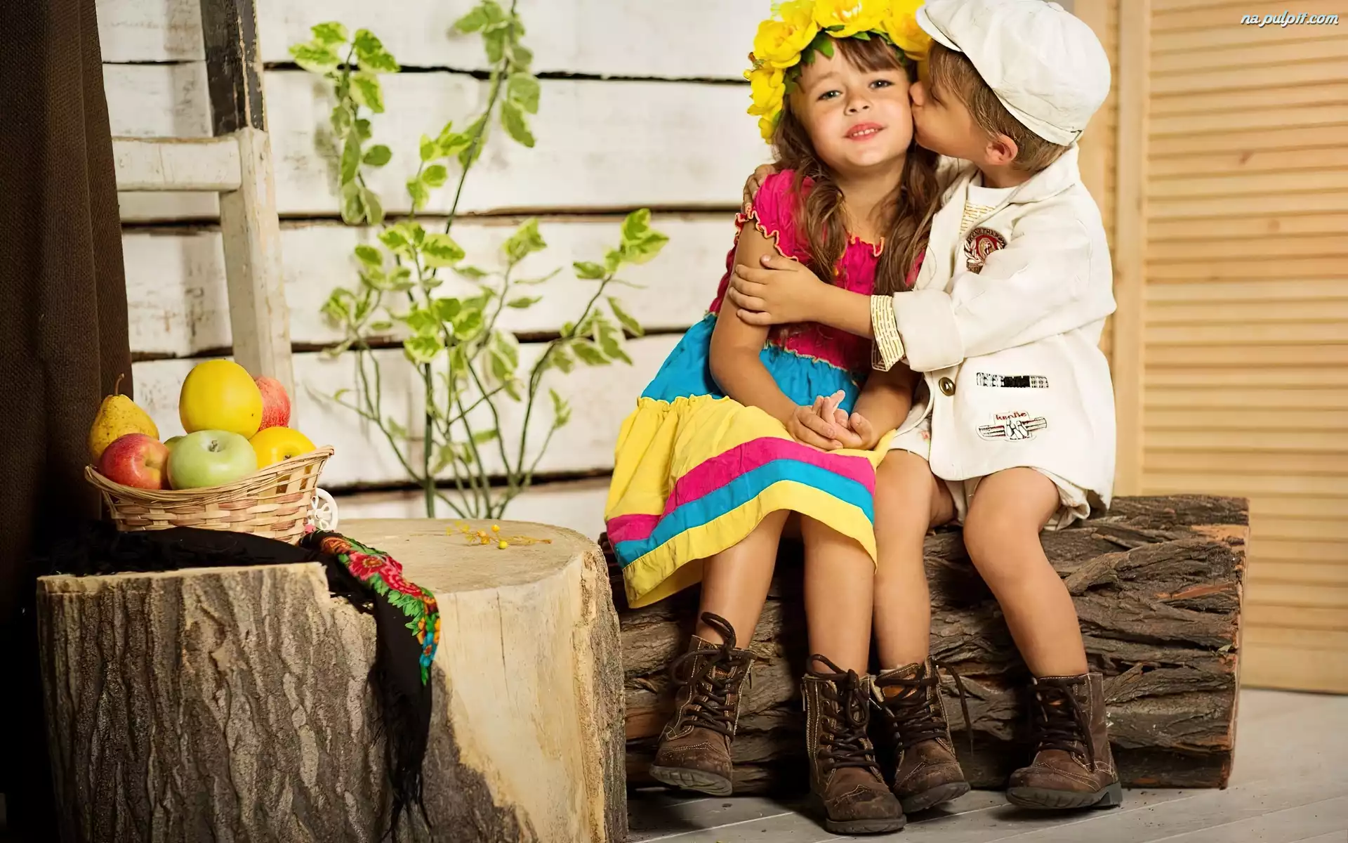 Dziewczynka, Pocałunek, Przyjaźń, Chłopiec, Dzieci, Owoce Na Pulpit