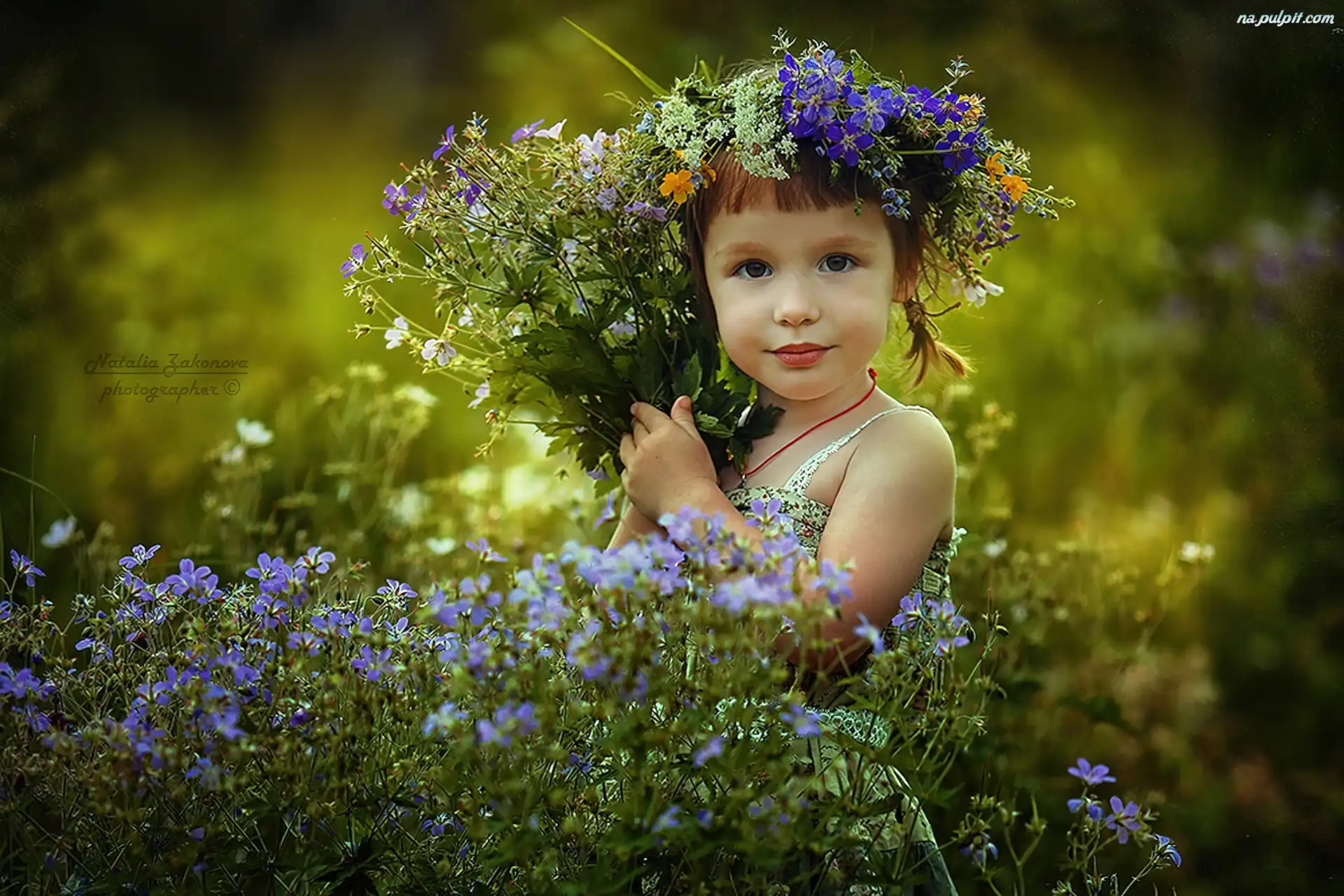 Dziewczynka, Bukiet, Wianek, Łąka, Dziecko, Kwiaty Na Pulpit