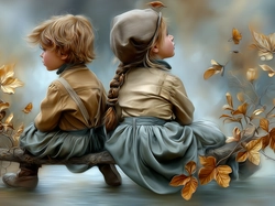 Chłopiec, Dziewczynka, Gałąź, Grafika AI