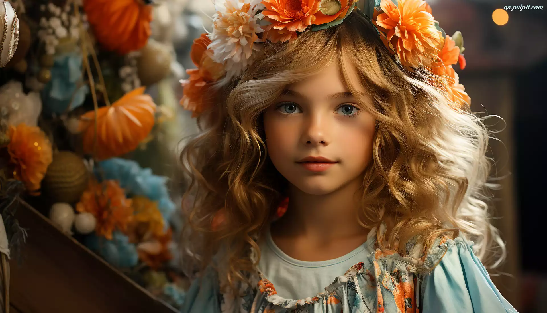 Kwiaty, Włosy, Kręcone, Dziewczynka, Blondynka, Długie, Wianek Na Pulpit