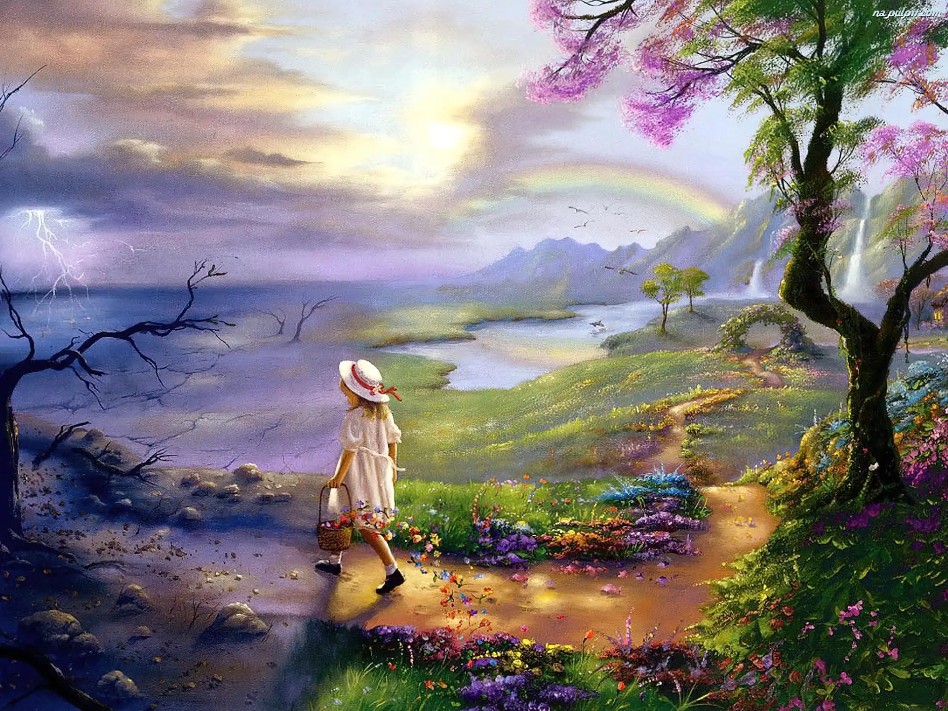 Kwiatki, Dziewczynka, Koszyk Na Pulpit