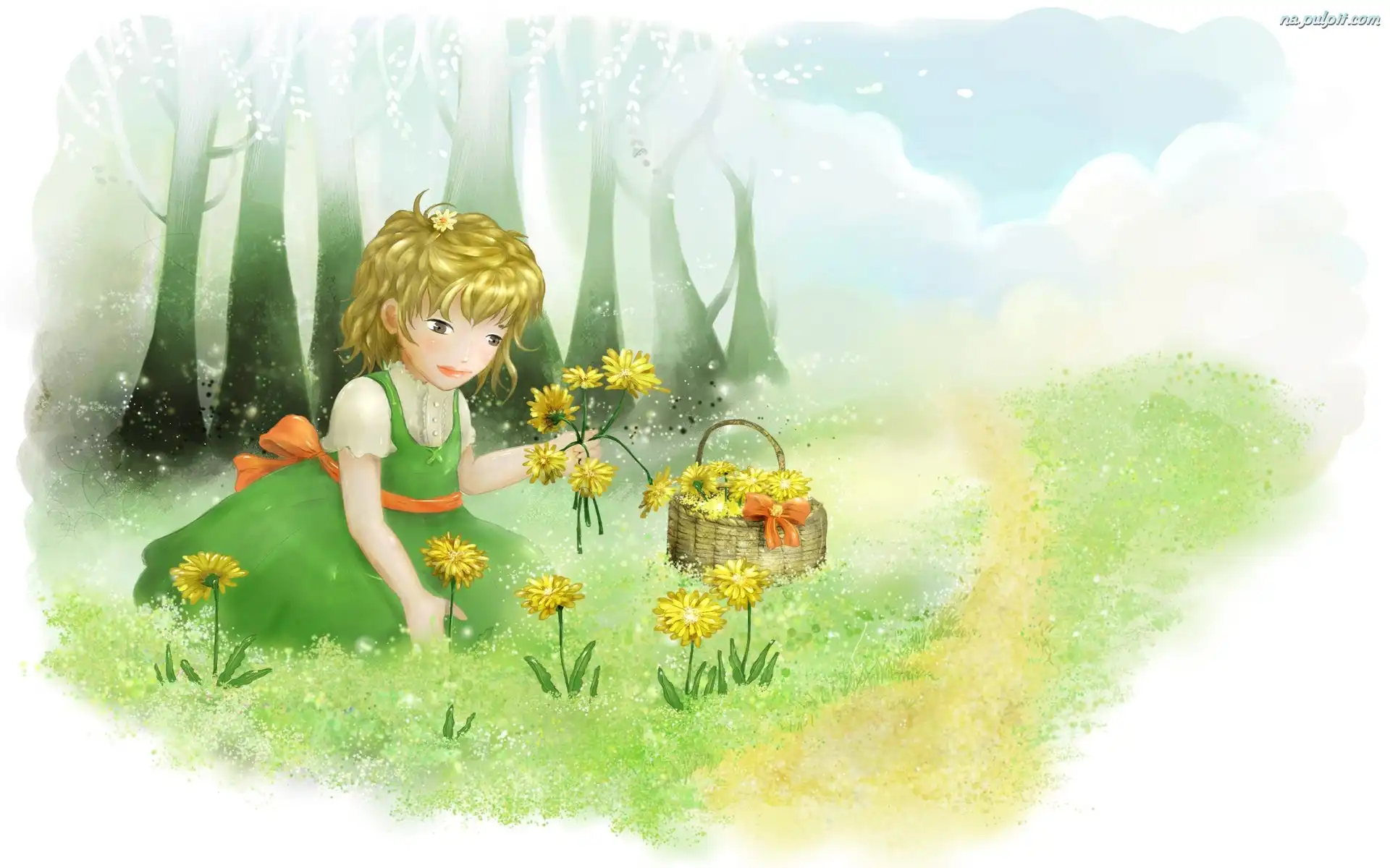 Kwiaty, Dziewczynka, Łąka Na Pulpit