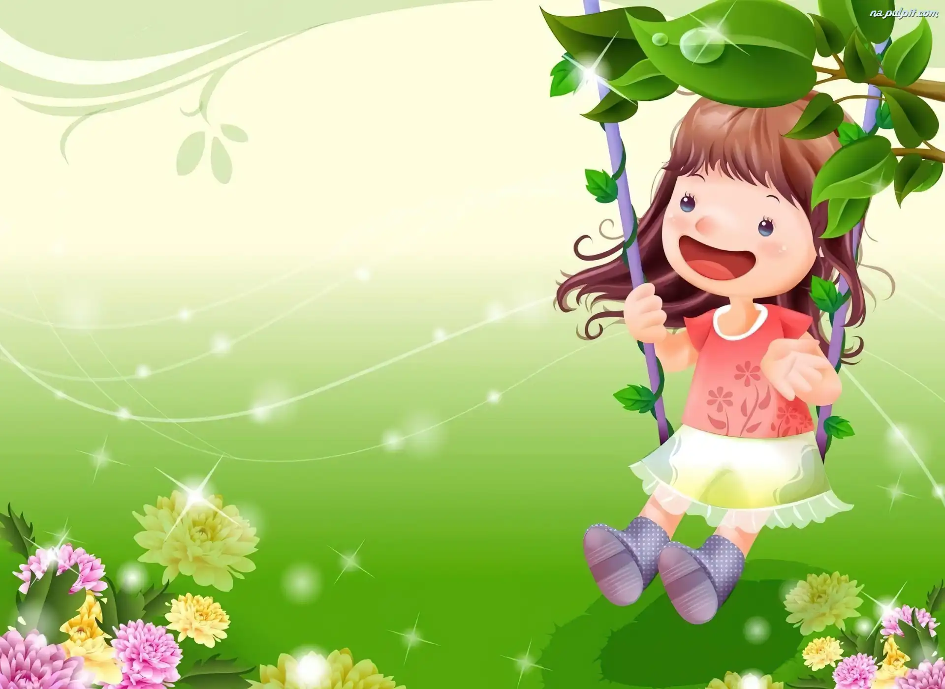 Kwiaty, Dziewczynka, Huśtawka Na Pulpit