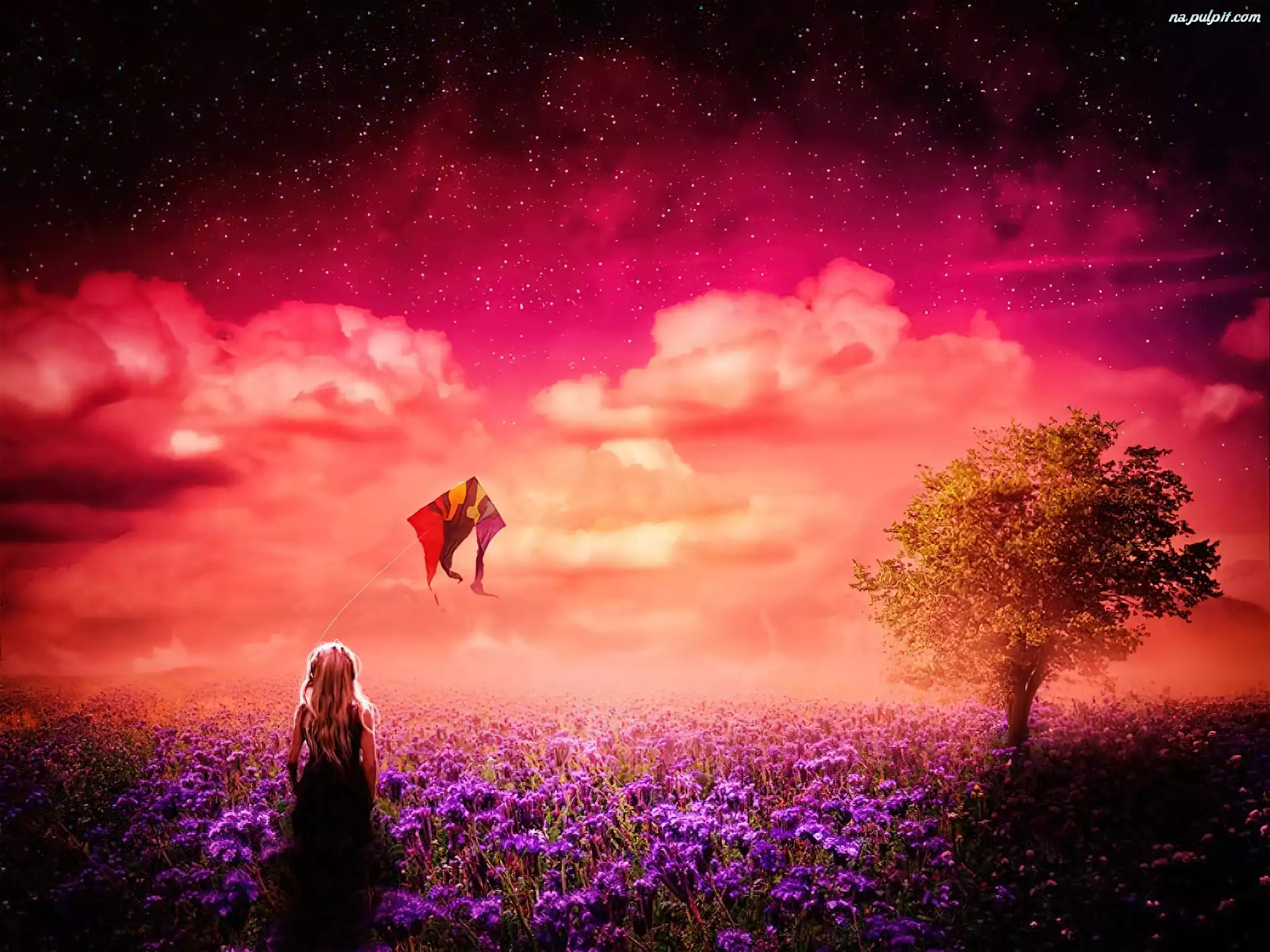 Kwiaty, Dziewczynka, Latawiec Na Pulpit