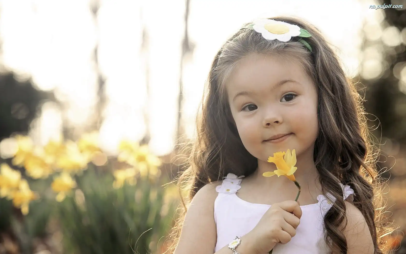 Kwiaty, Dziewczynka, Zółte Na Pulpit