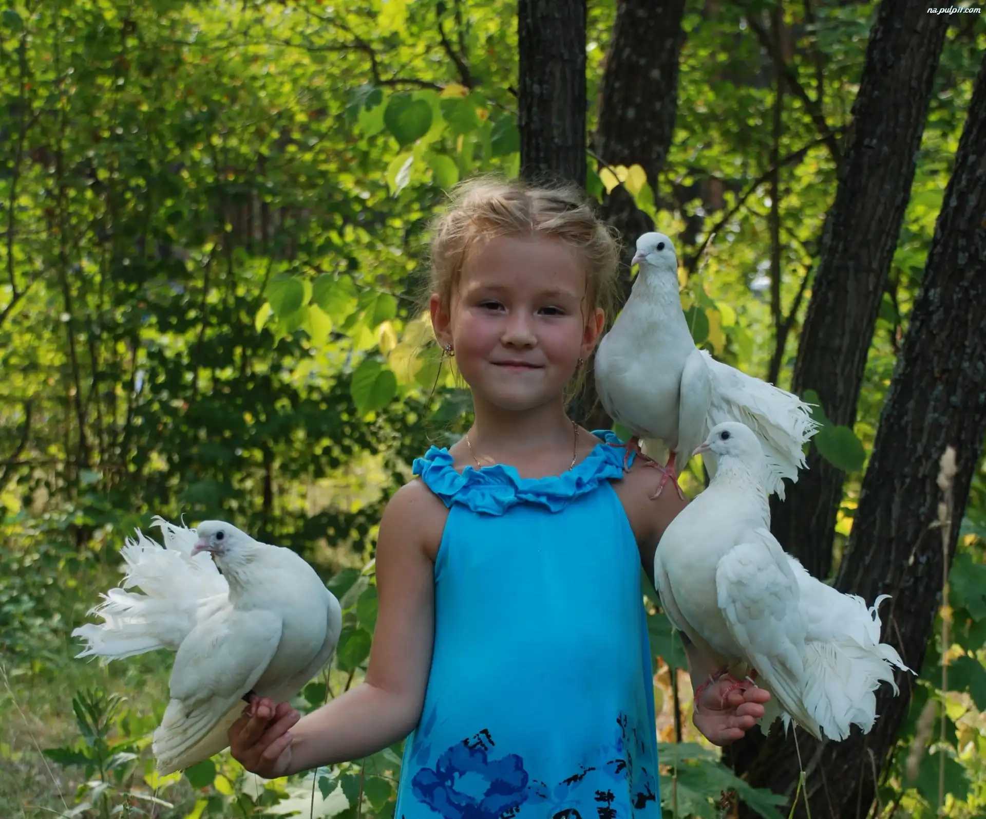 Las, Dziewczynka, Gołębie Na Pulpit