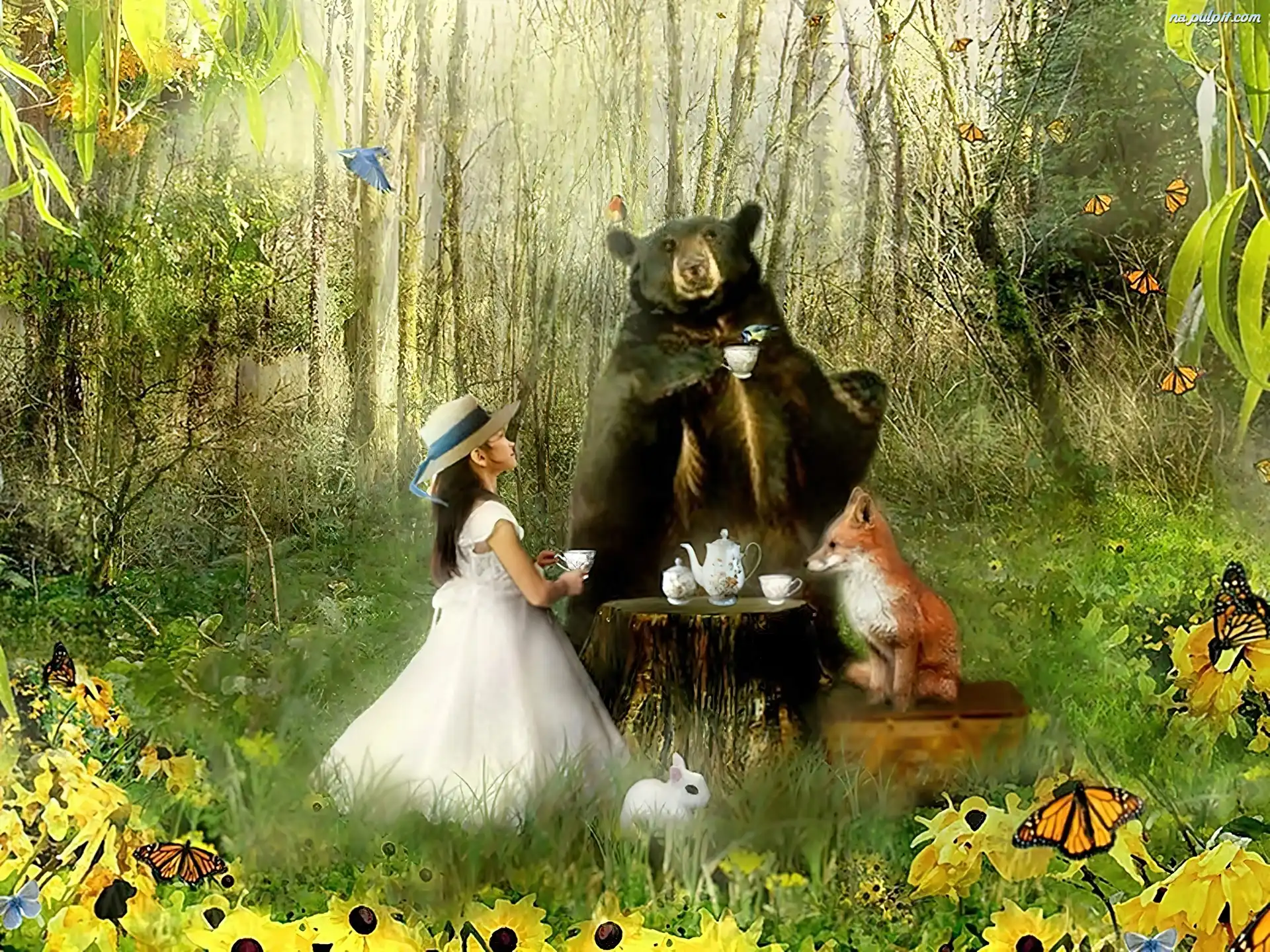 Las, Dziewczynka, Zwierzęta Na Pulpit