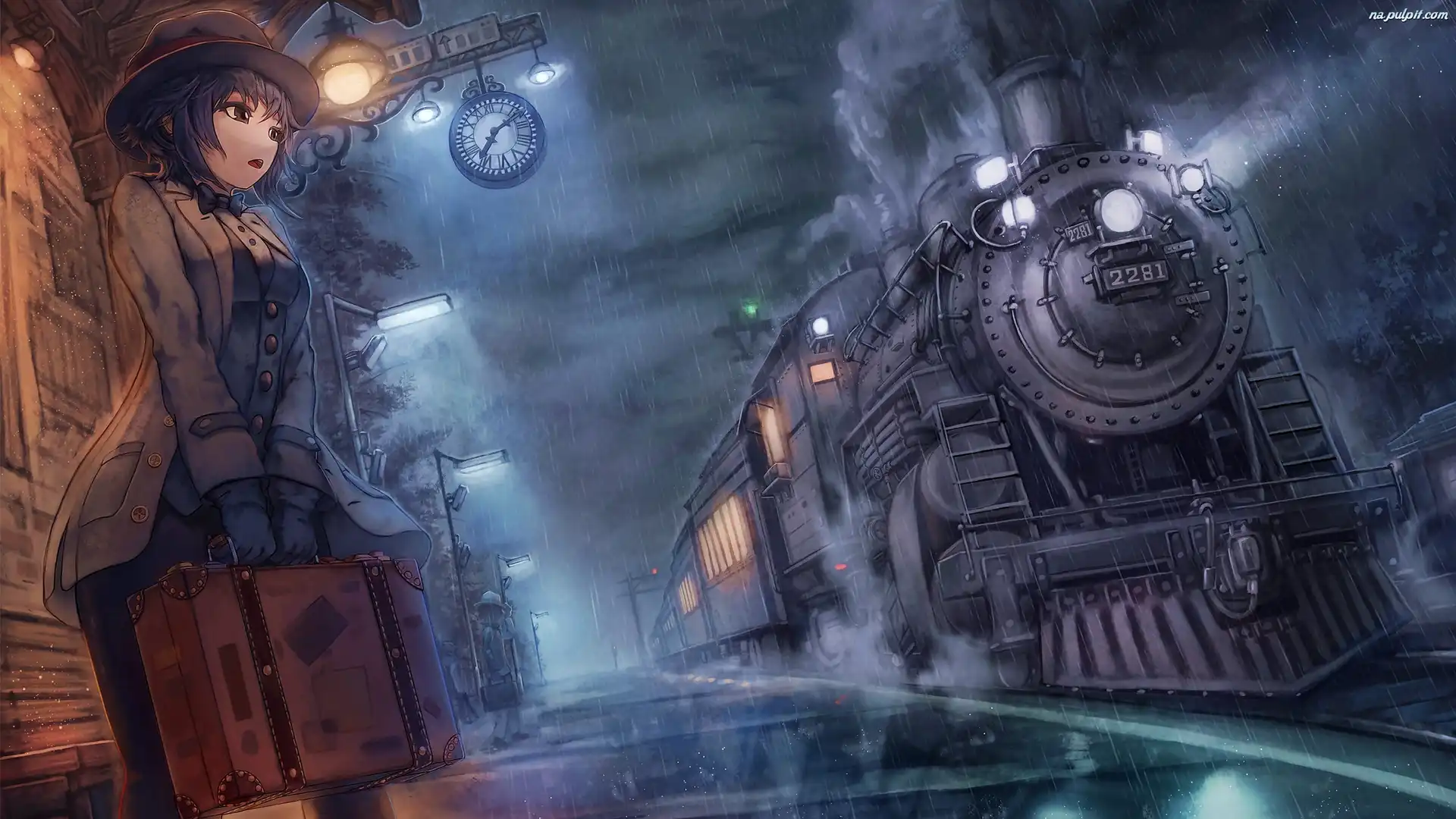 Dziewczynka, Stacja, Deszcz, Walizka, Manga, PociÄ…g Na Pulpit