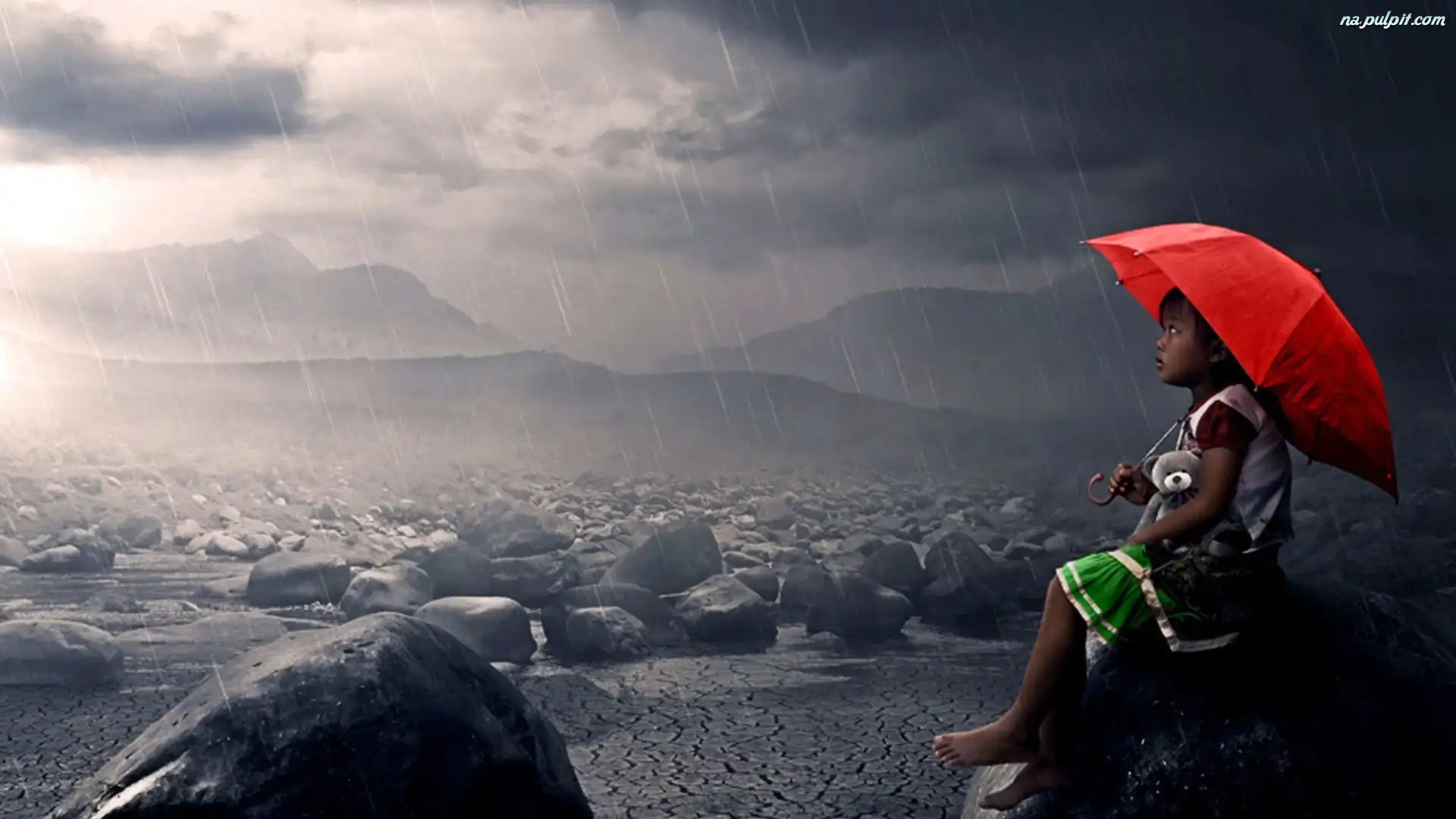 Parasol, Dziewczynka, Deszcz Na Pulpit