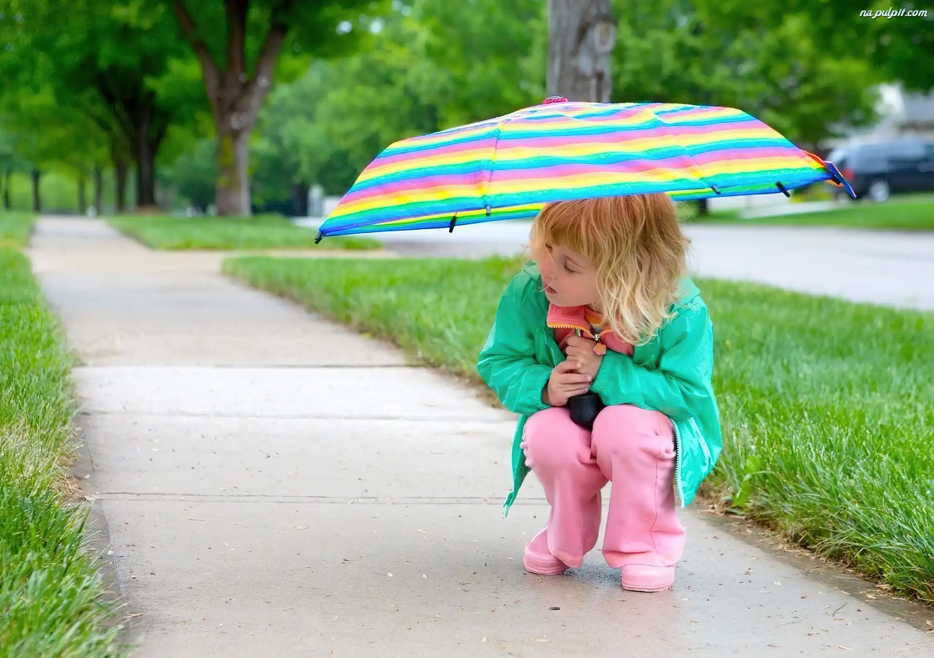 Parasol, Dziewczynka, Kolorowy Na Pulpit